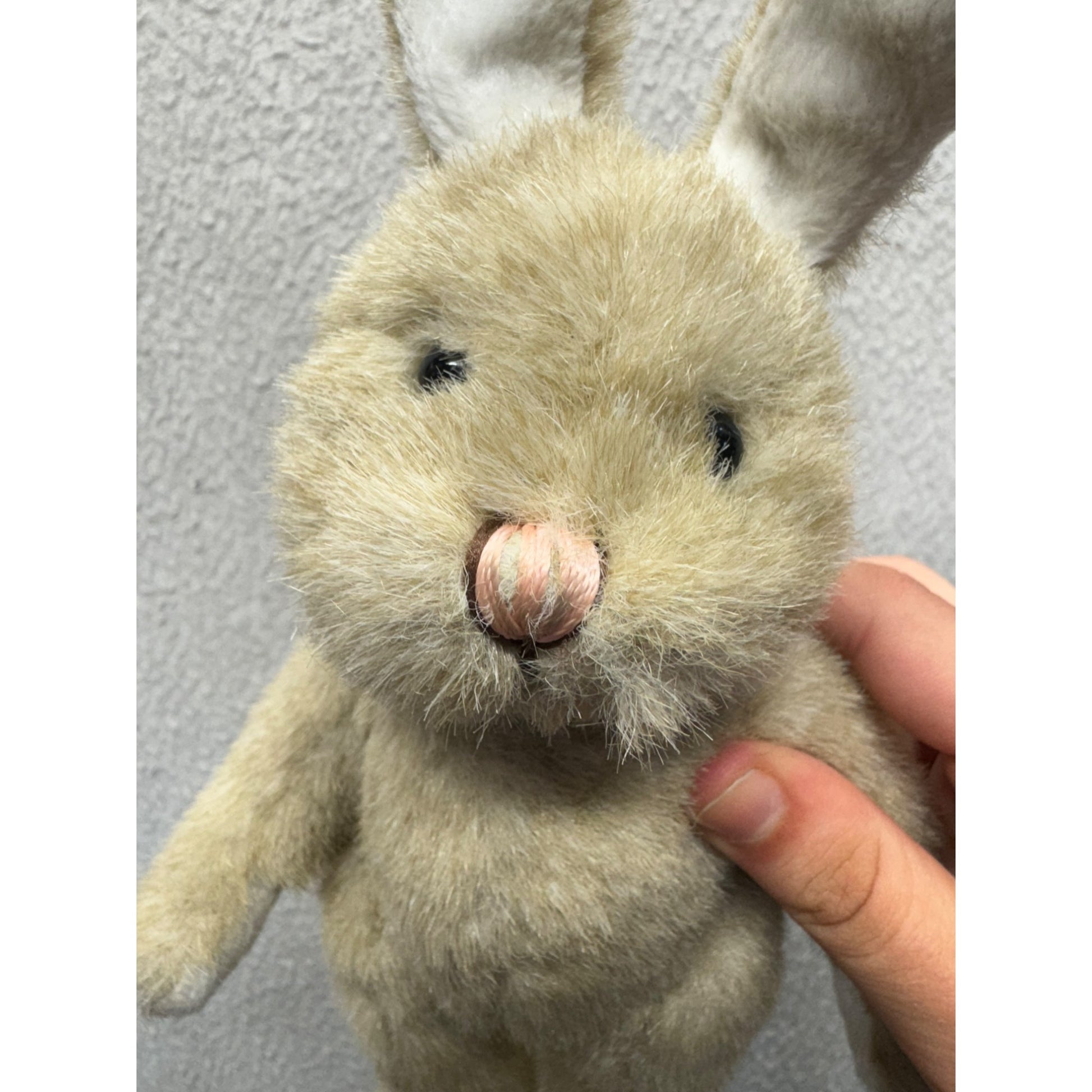 A meticulously crafted plush representation of the beloved literary character, featuring soft, cream-colored fur and delicate embroidered details. Accompanied by the original Beatrix Potter book, this collectible offers nostalgic charm for literature and vintage toy enthusiasts.