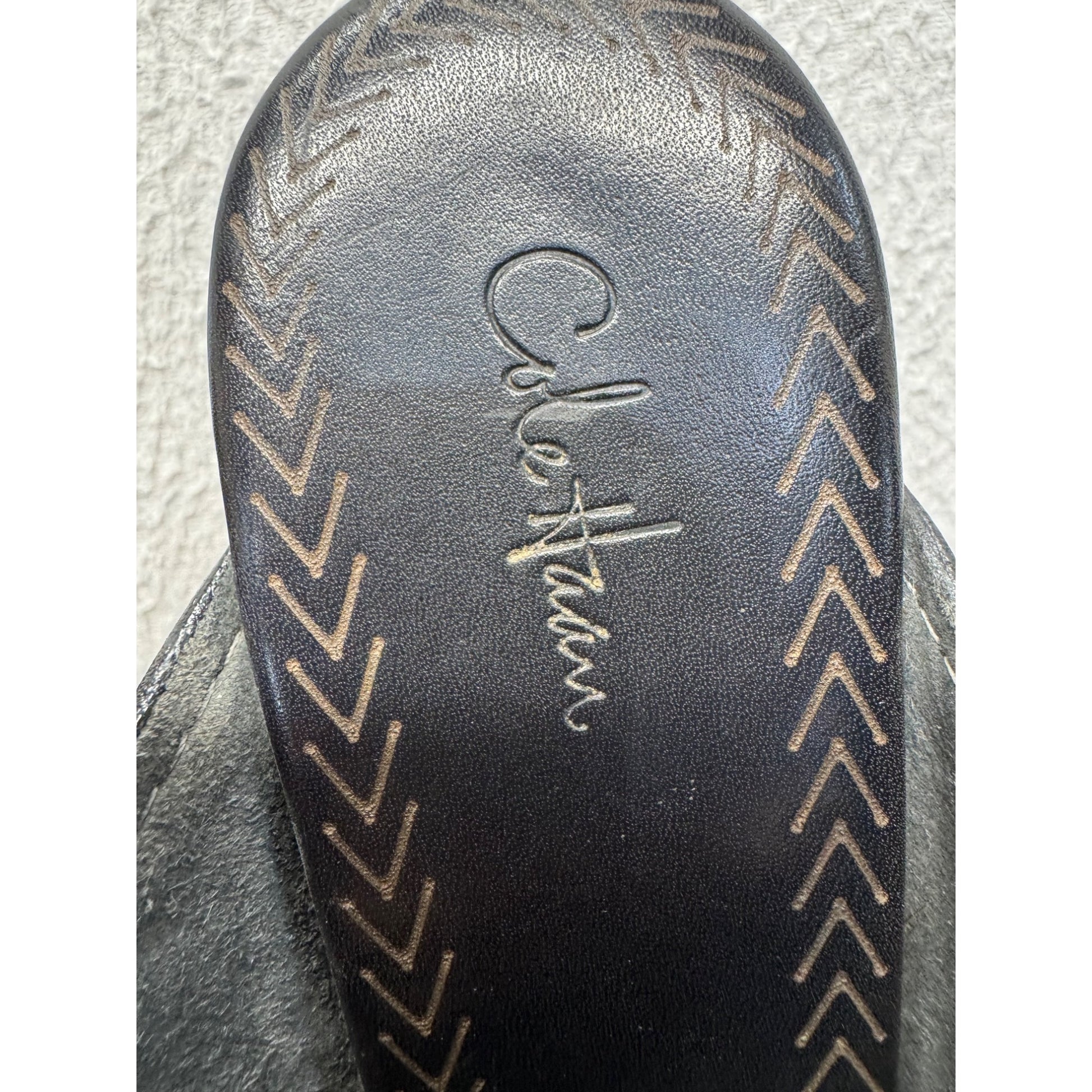 Cole Haan Black Leather Braided Strap Heeled Sandals #9018