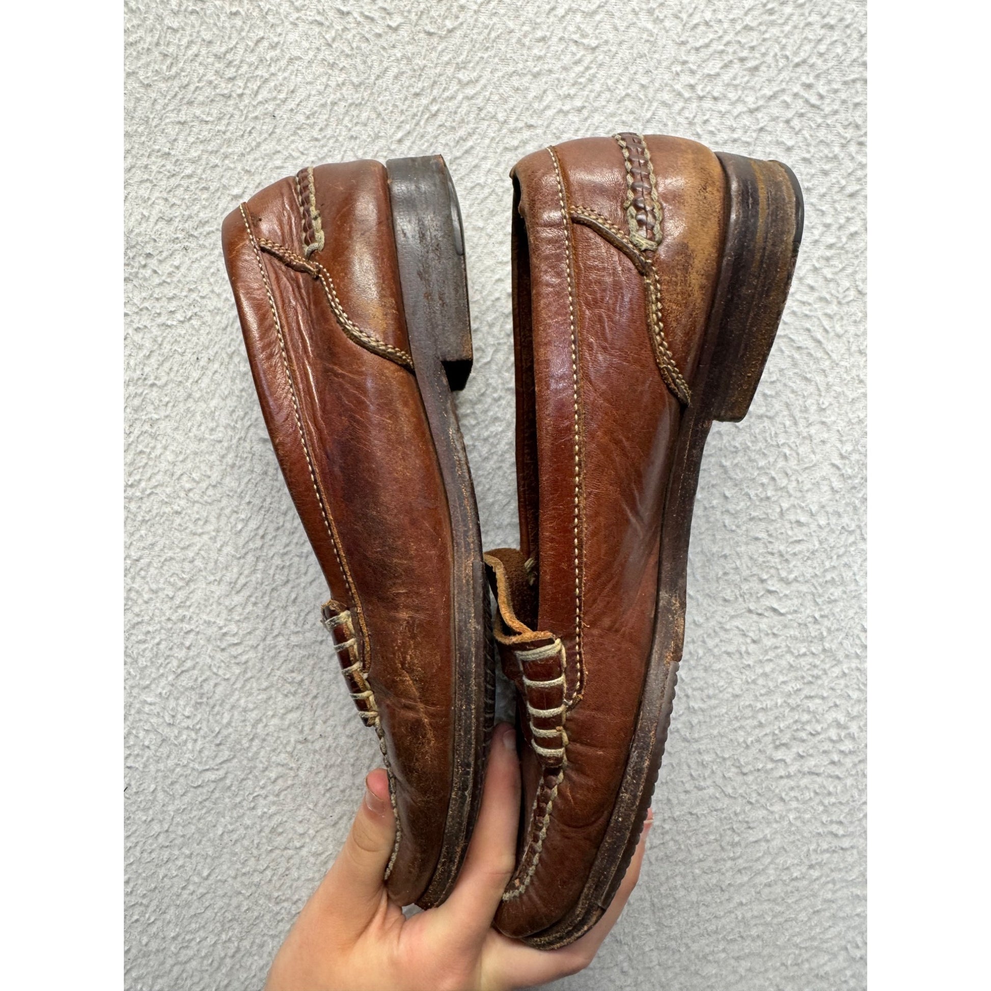 Cole Haan Mens Brown Leather Loafers With Stitched Details 9443