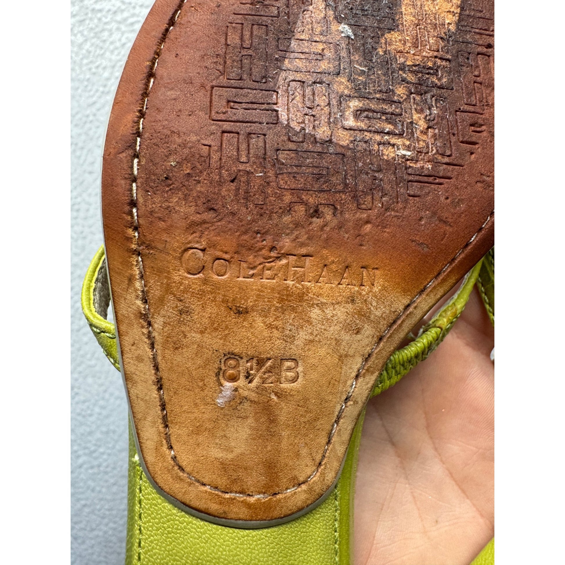Cole Haan Womens Lime Green Leather Strappy Kitten Heel Sandals Size 8.5 #9011