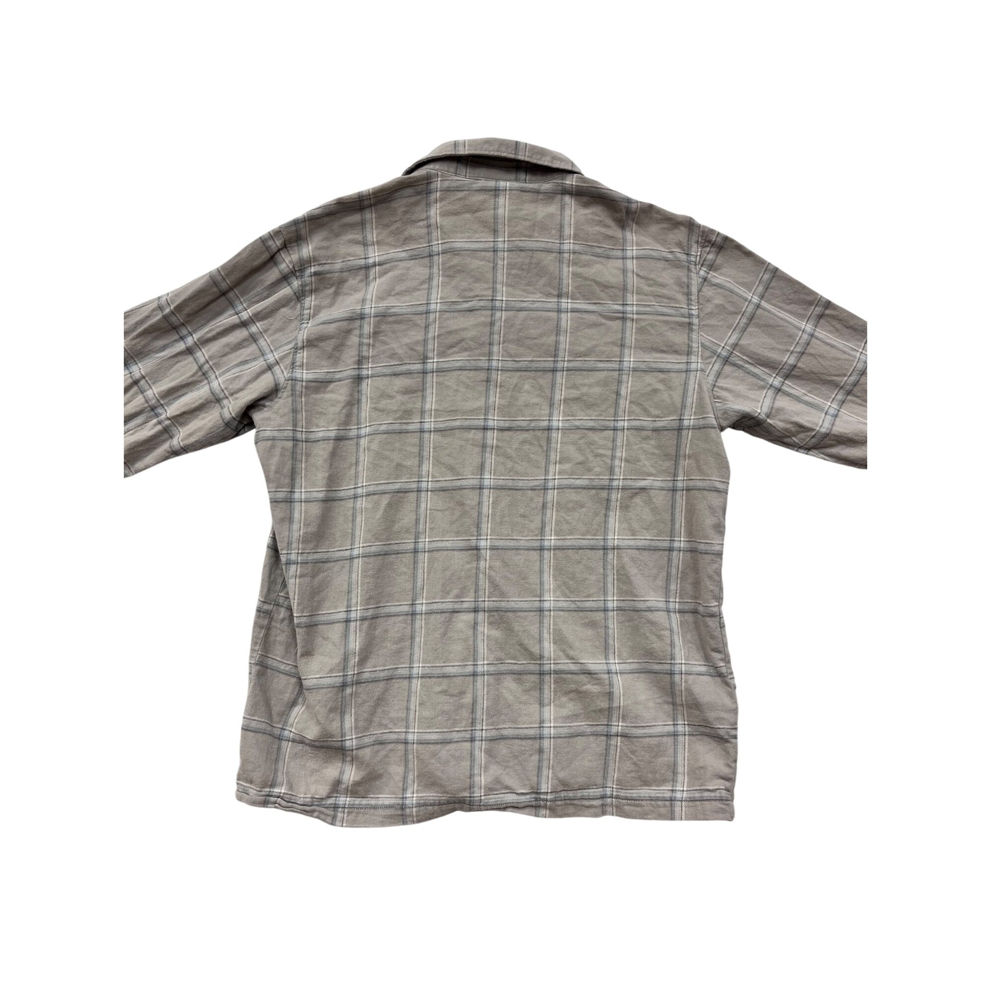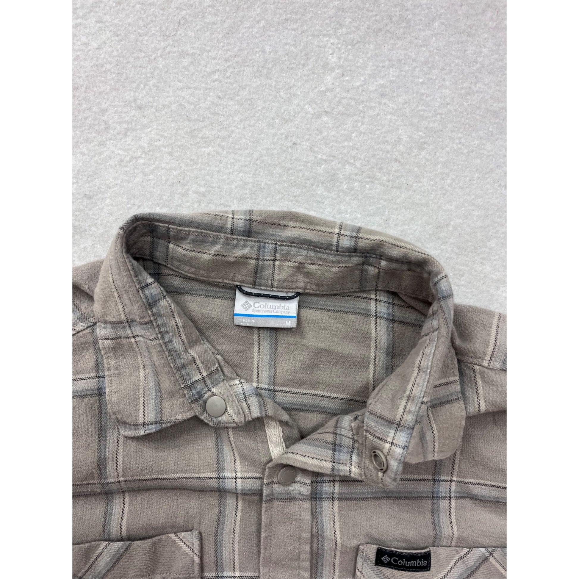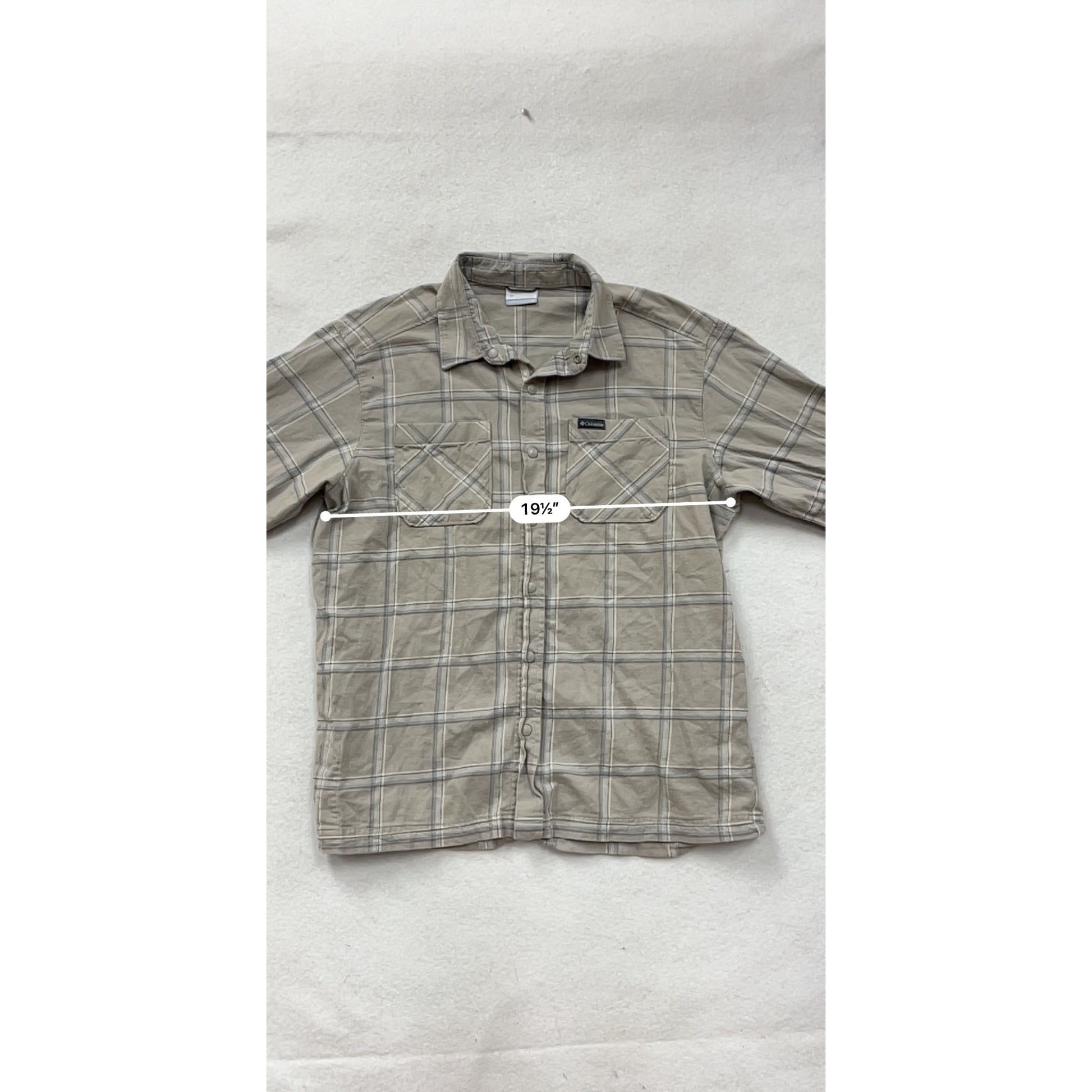 Columbia Medium Plaid Button-Up Shirt Tan & Gray Long Sleeve #8829