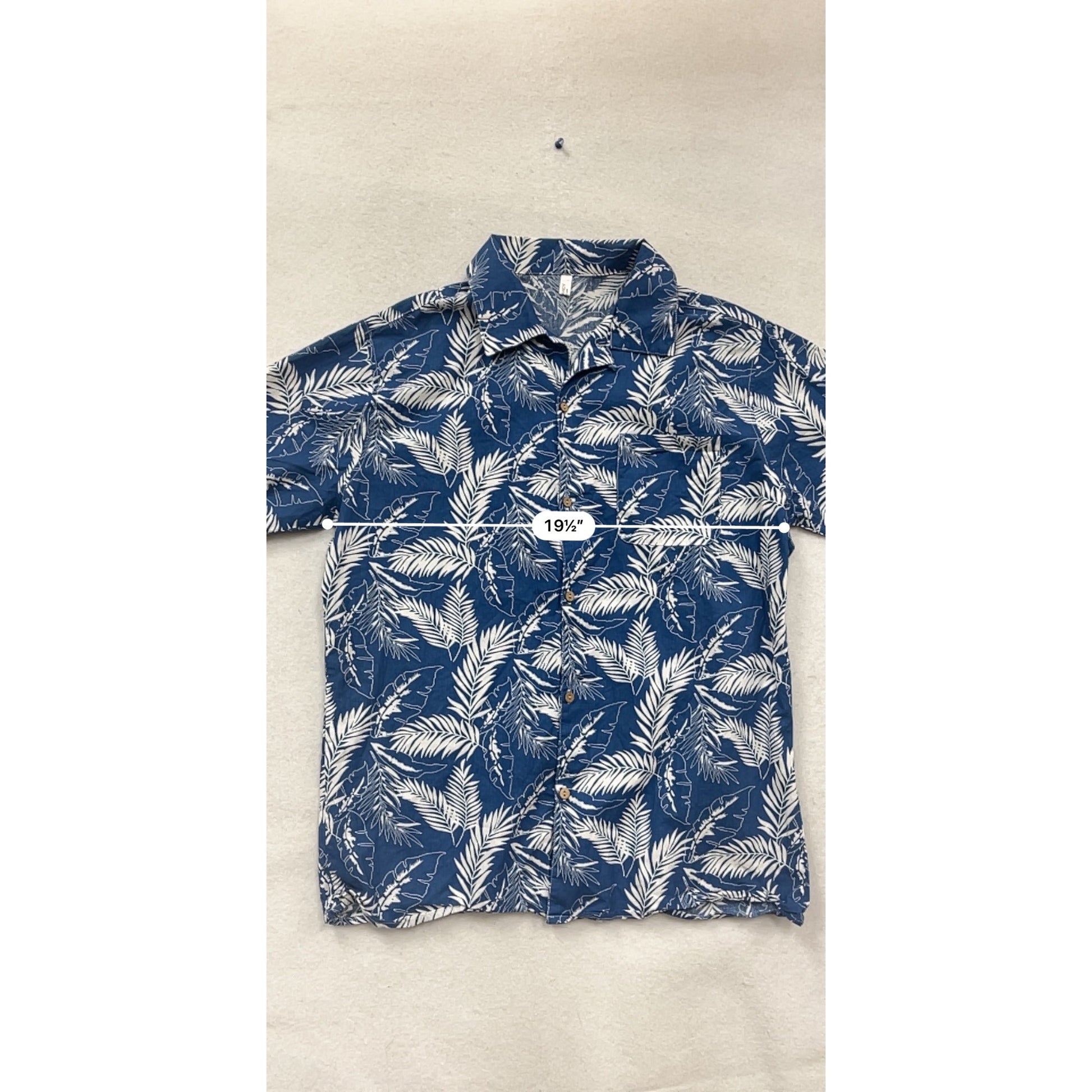 This Coofandy Hawaiian shirt, crafted from 100% cotton, features a tropical leaf pattern in blue and white. Ideal for warm-weather wear, it offers a relaxed fit for comfort and style.