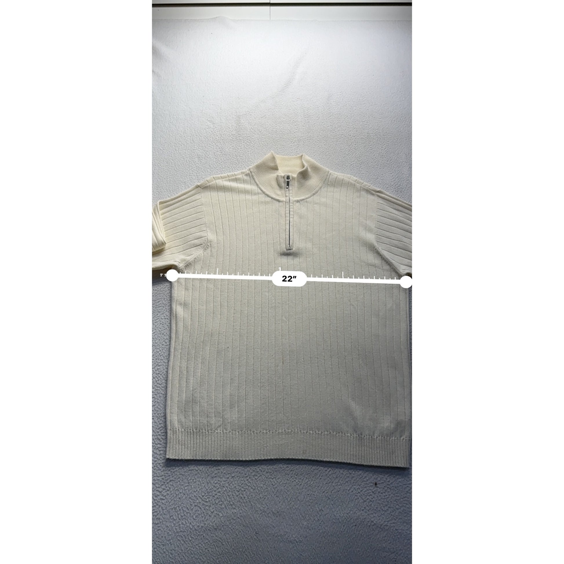Cream Ribbed Half-Zip Sweater Pullover Size L 9428