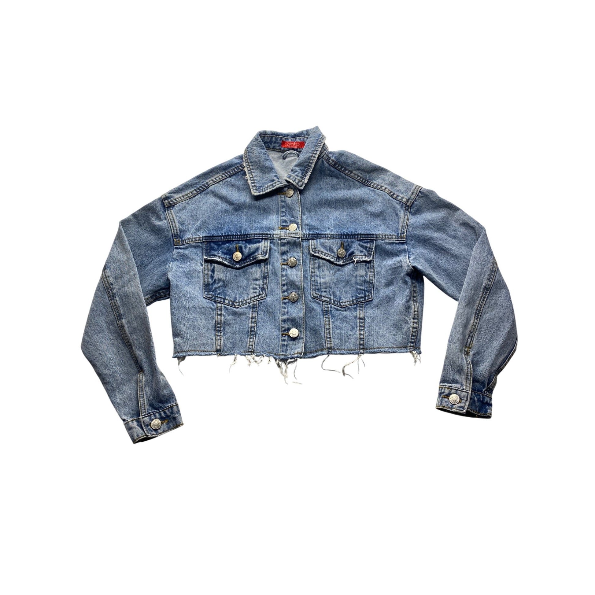 Cropped Denim Jacket With Frayed Hem By HH Jeans Los Angeles #7278