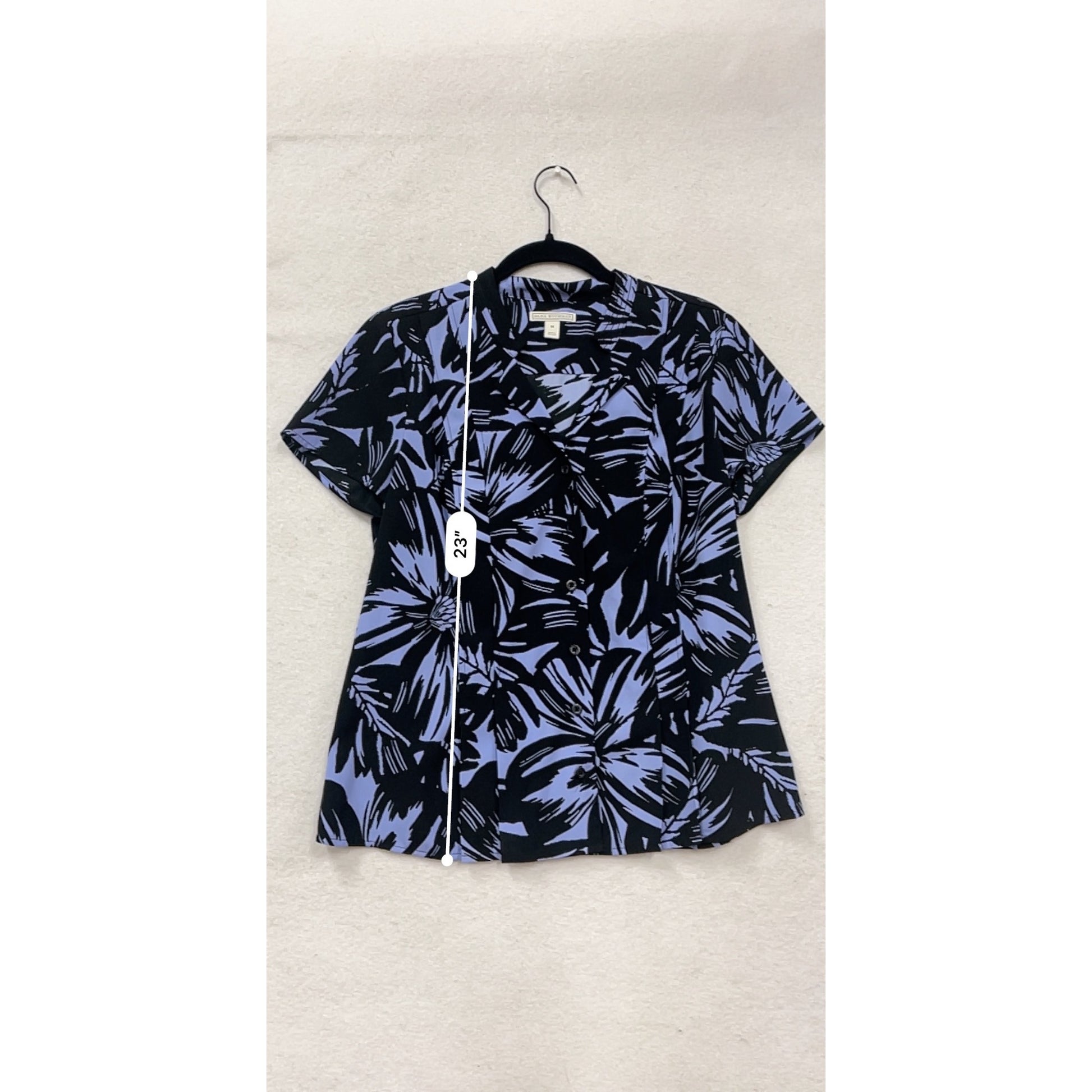 Dana Buchman Floral Print Blouse M Black & Purple Short Sleeve #191A