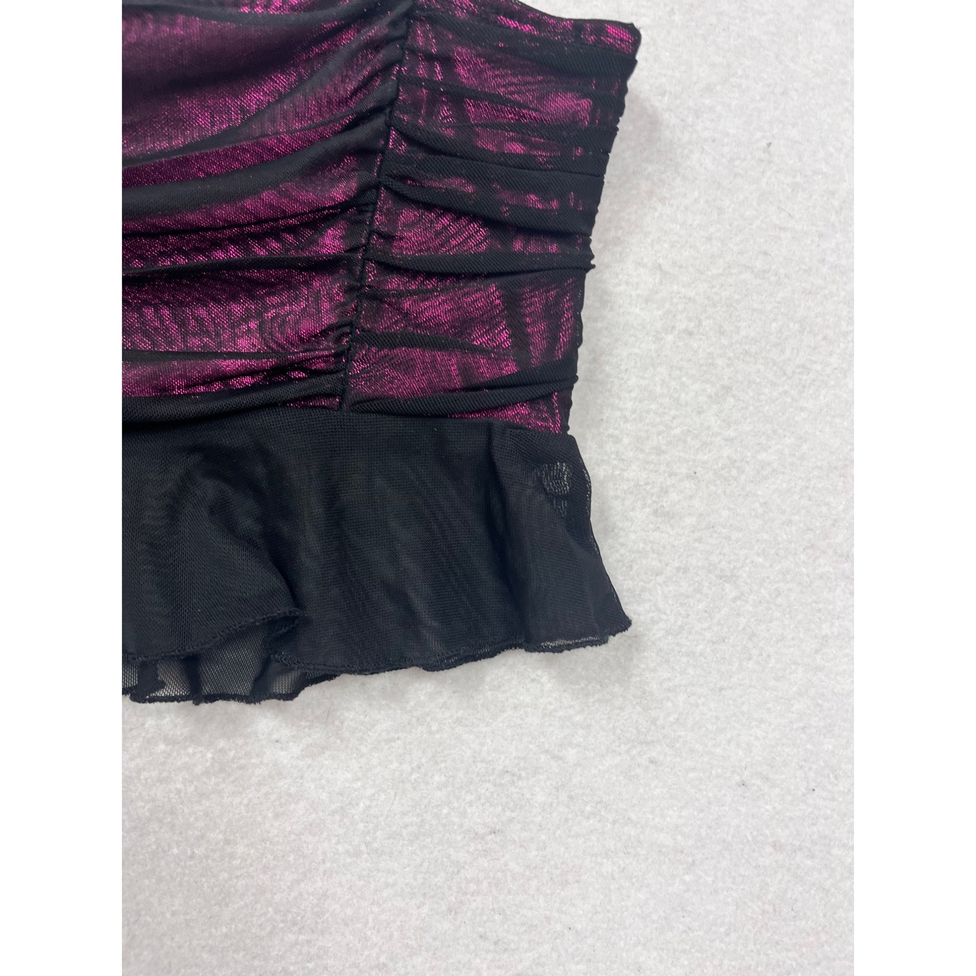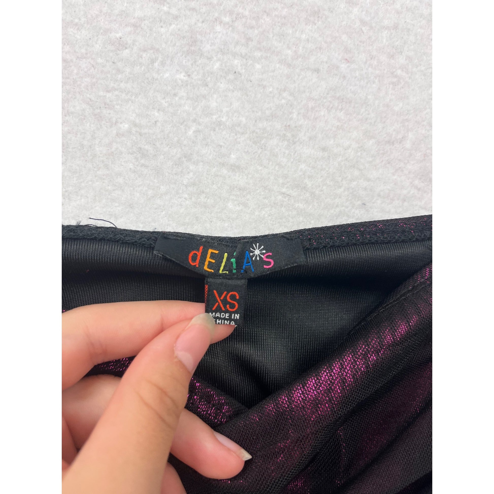 Delias XS Purple & Black Ruched Camisole Top With Ruffle Hem #113A