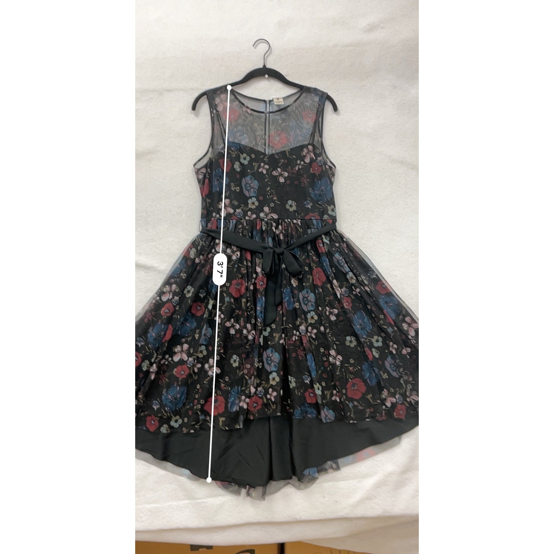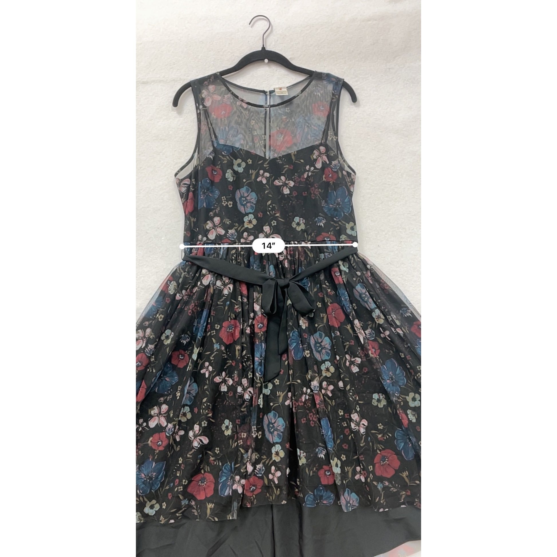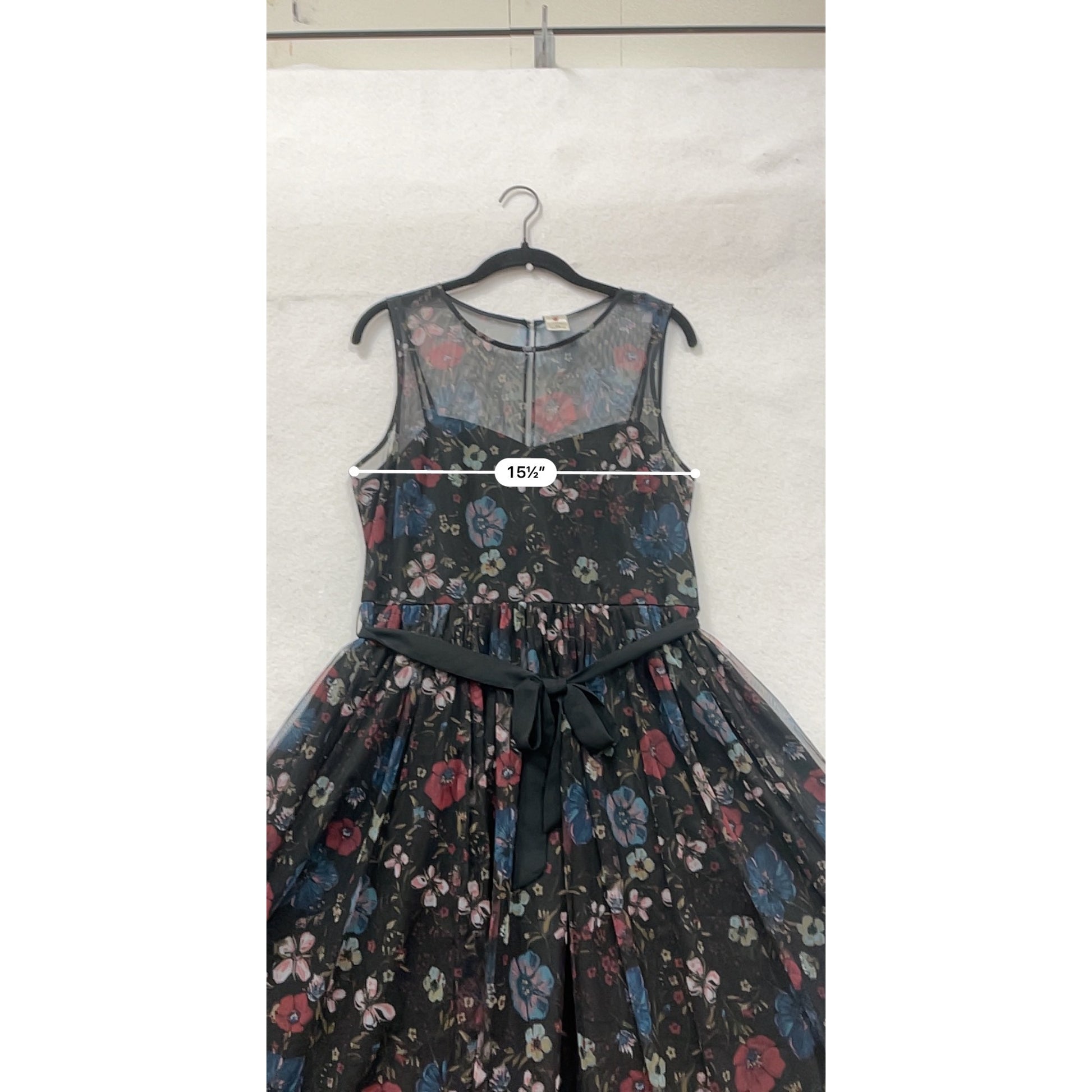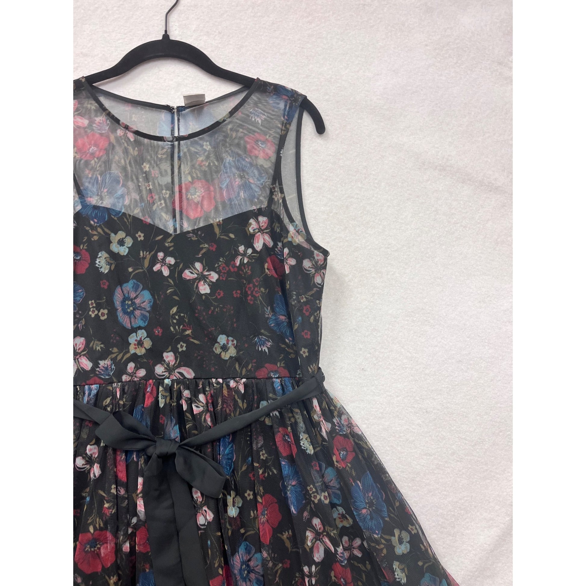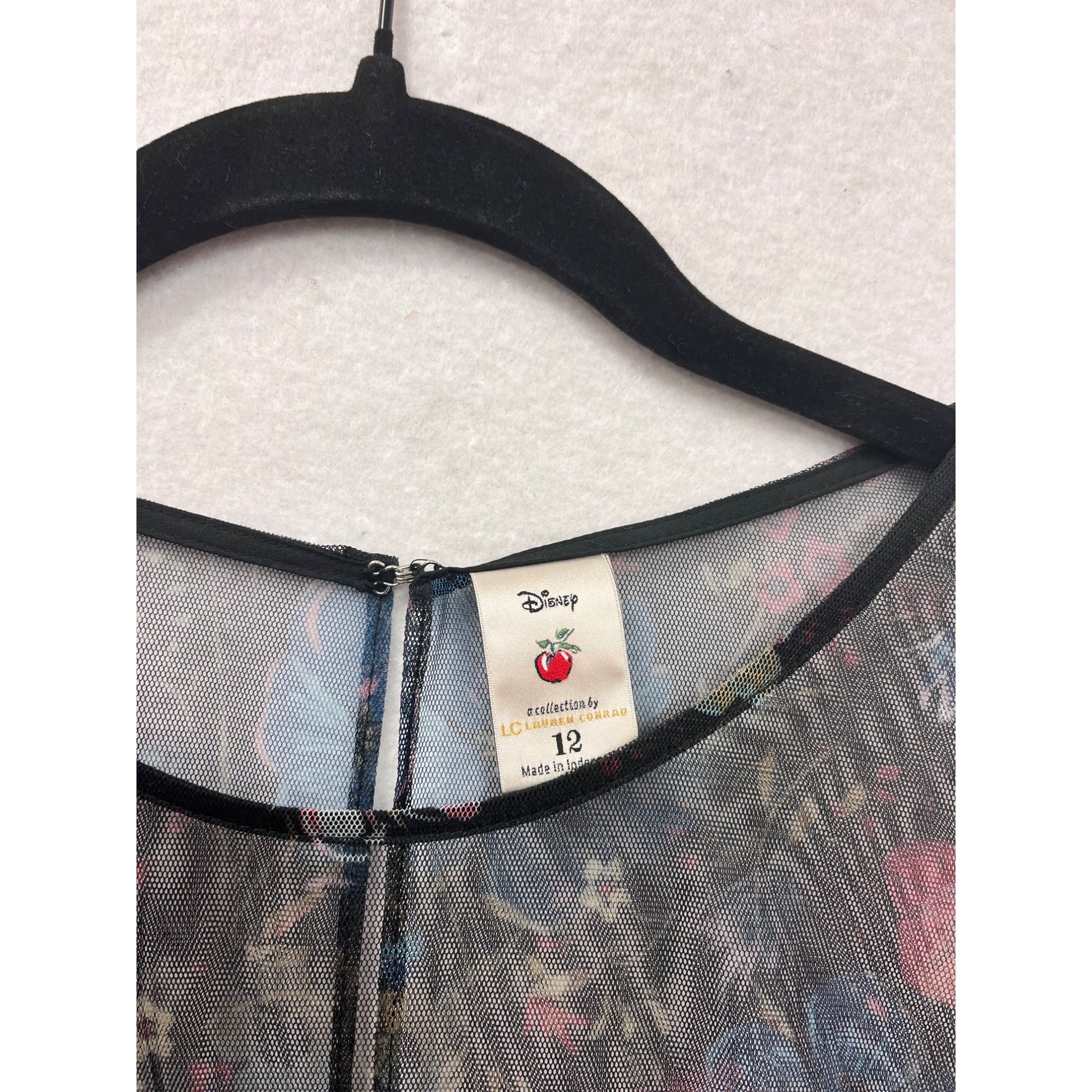 Disney Girls Floral Mesh Dress Black/Multicolor Size 12 Sleeveless With Sheer Overlay & Belt Accent #8089