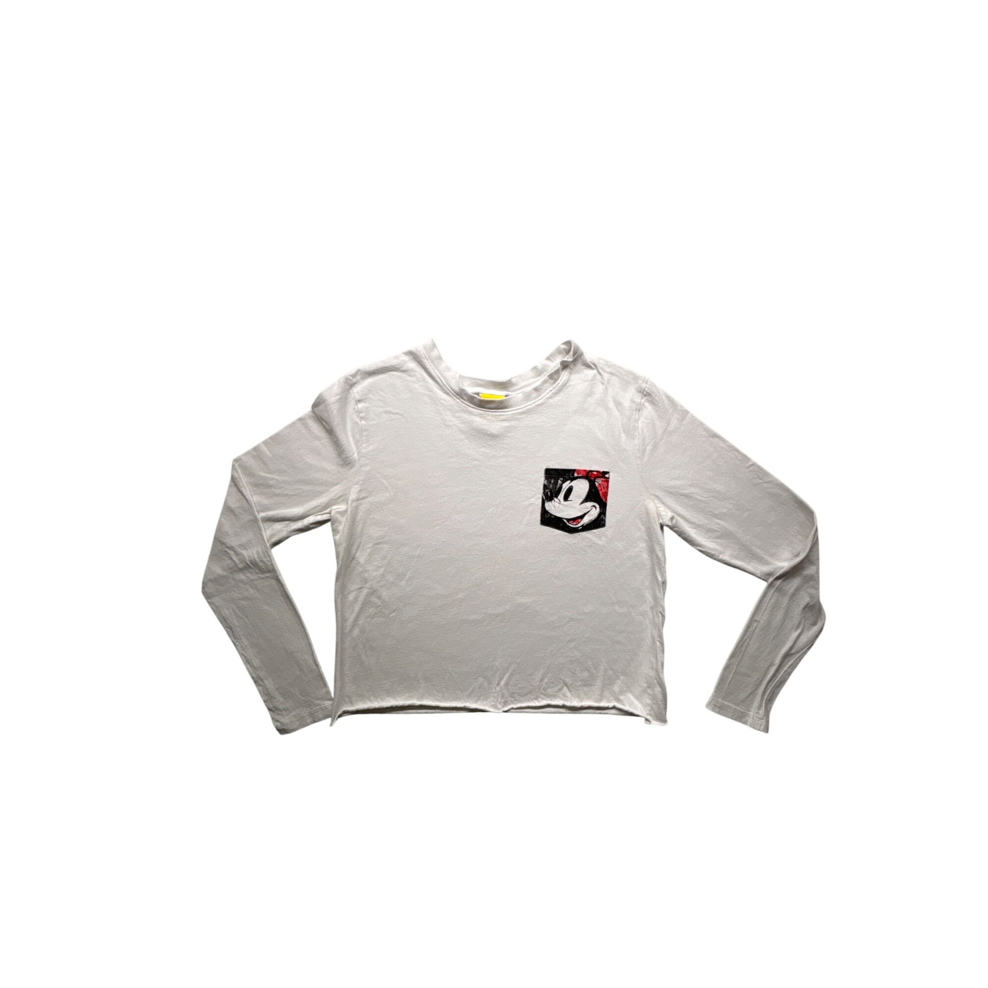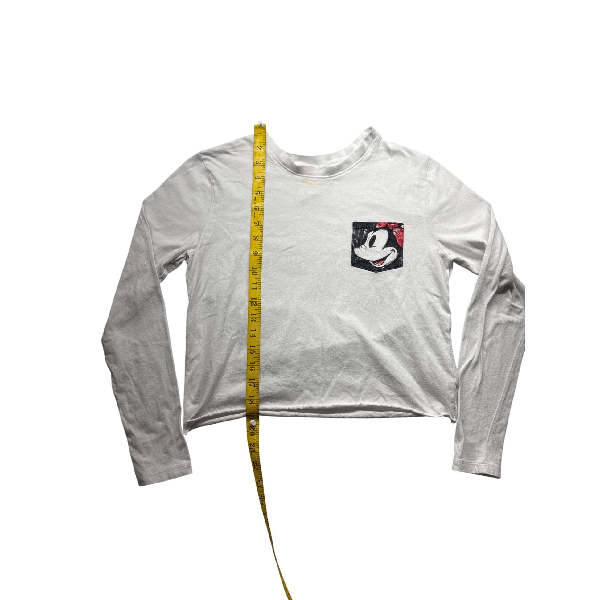 Stay stylish with this Disney Minnie Mouse crop top, featuring a playful graphic on a soft, white fabric. Its long sleeves offer warmth and comfort, making it an ideal casual wear piece.