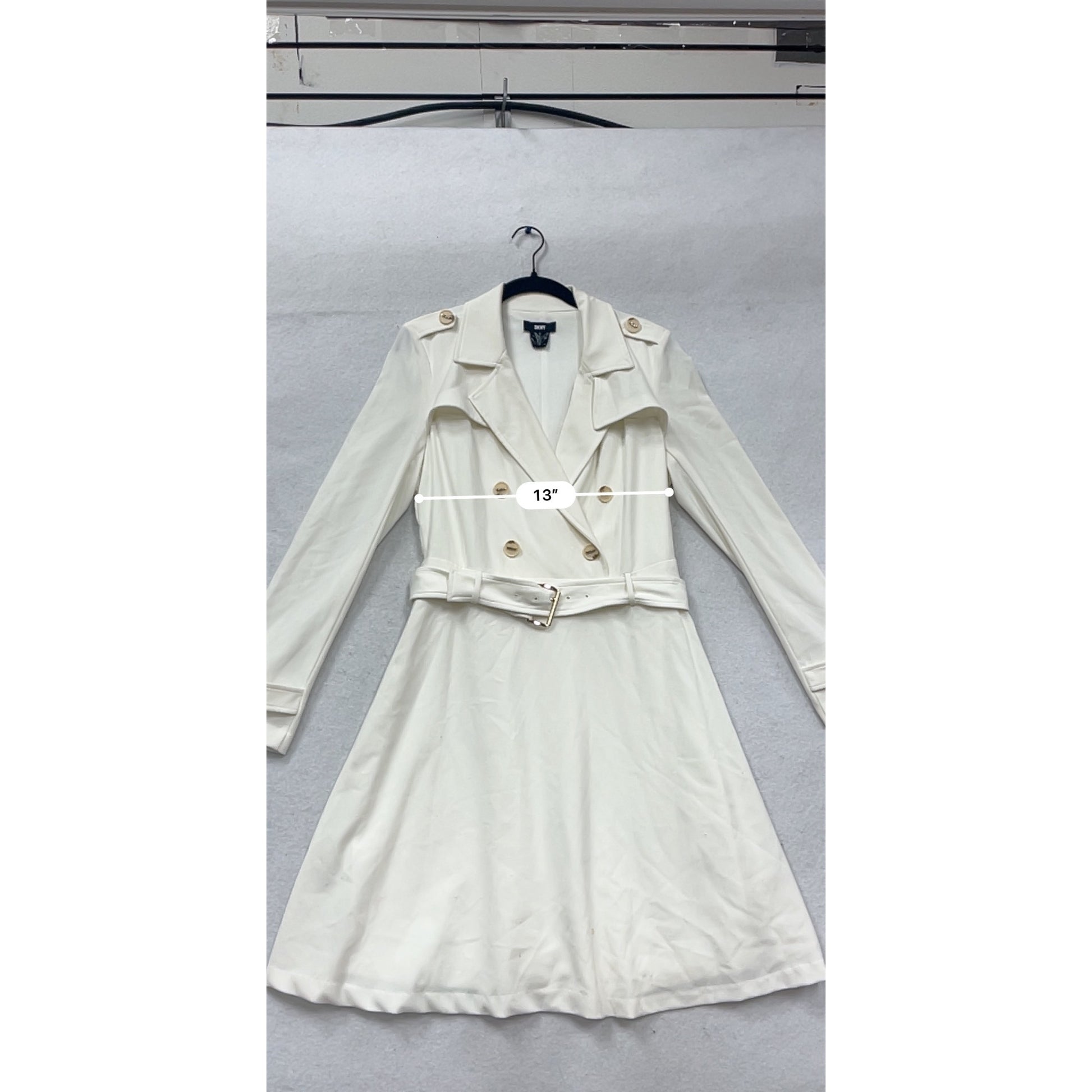 DKNY Womens White Double-Breasted Trench Coat With Belt Size M #536A