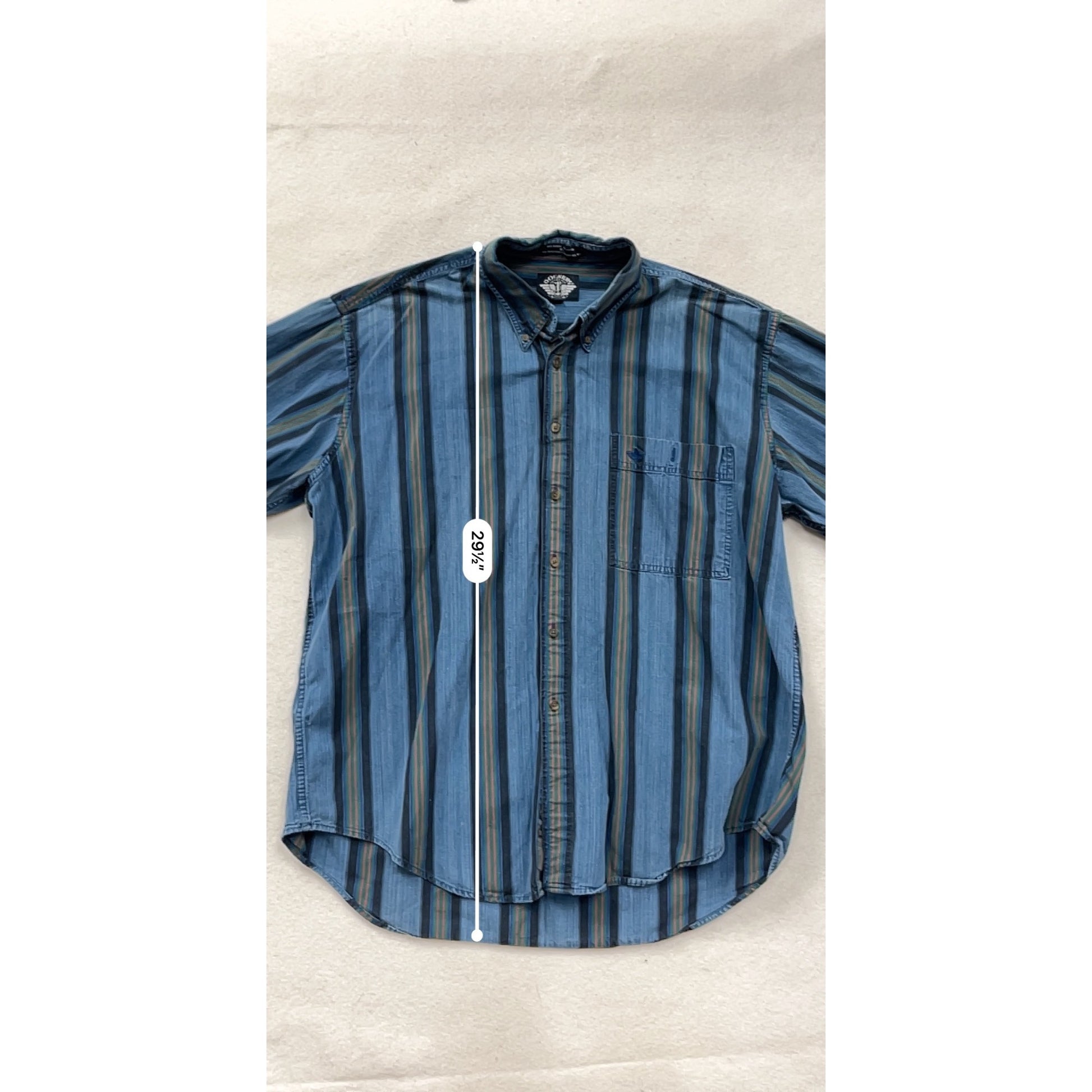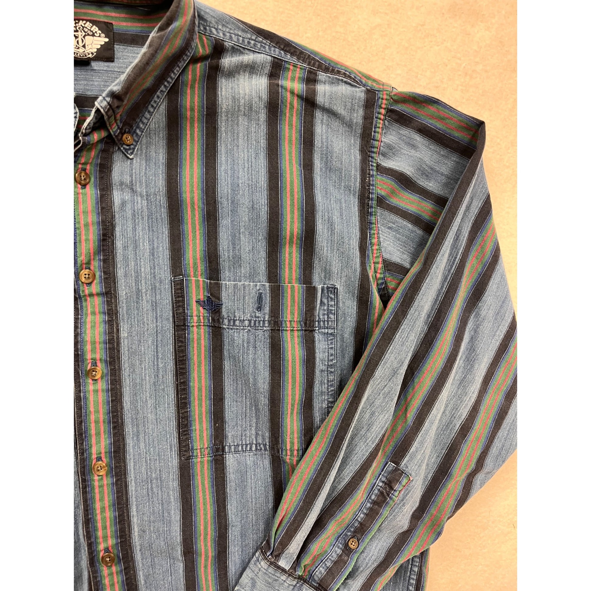 Dockers Mens XL Long Sleeve Striped Button-Up Denim Shirt Blue Green #8806