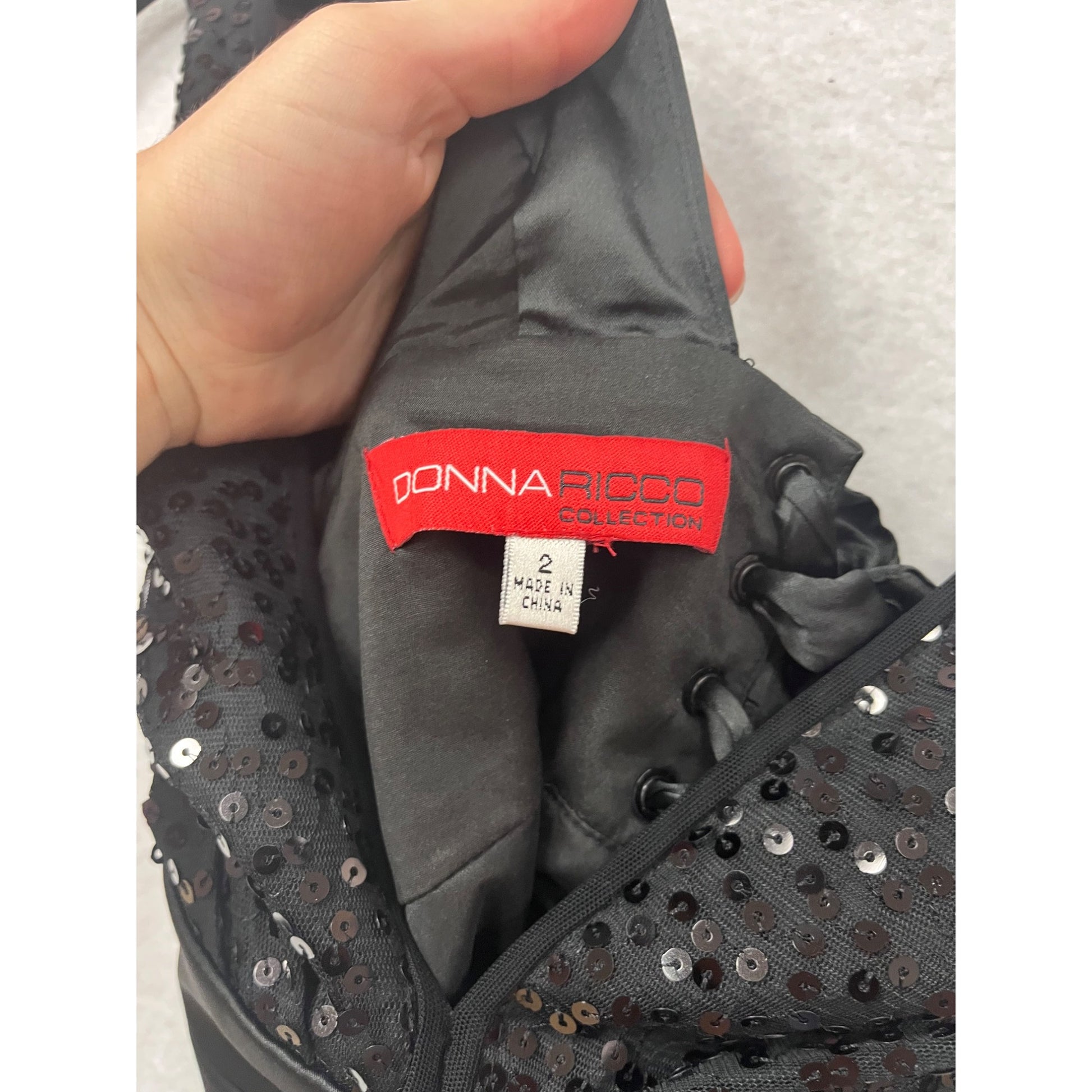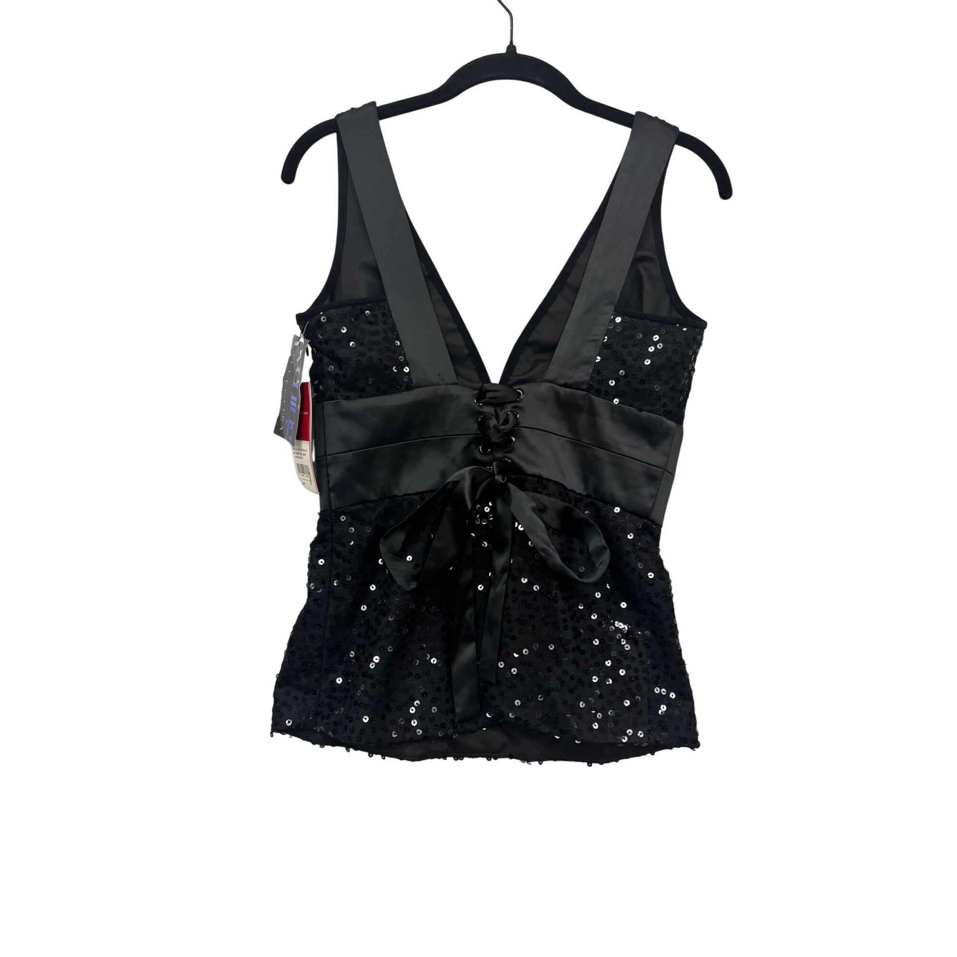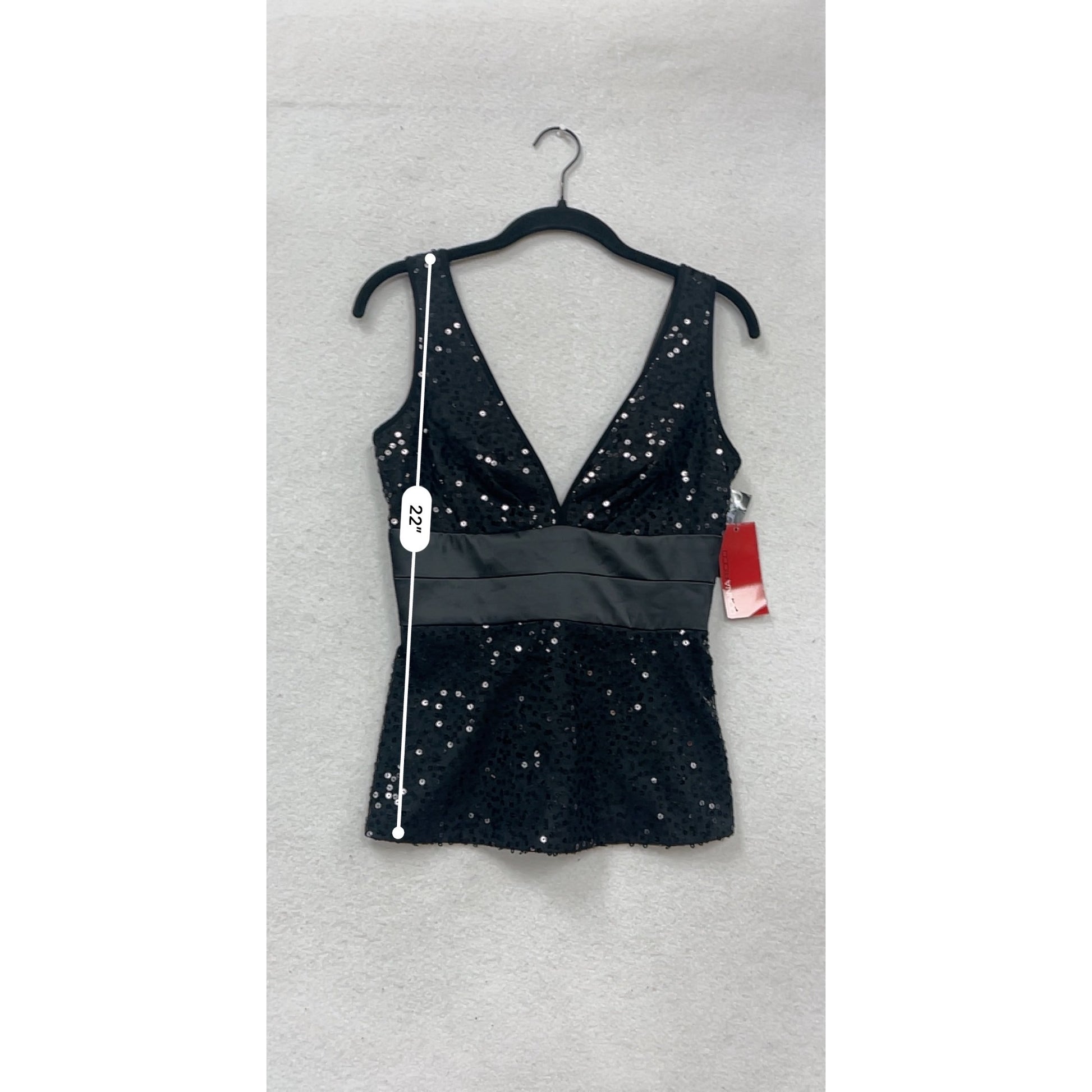 Donna Ricco Collection Sequin Evening Top Black V-Neck Sleeveless Size 2 #343A