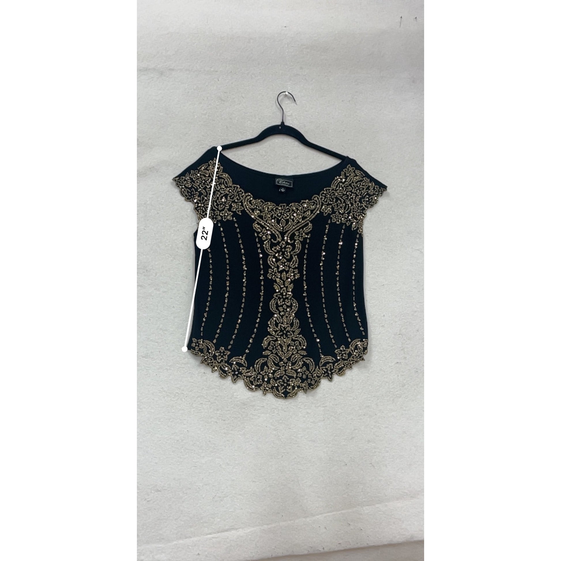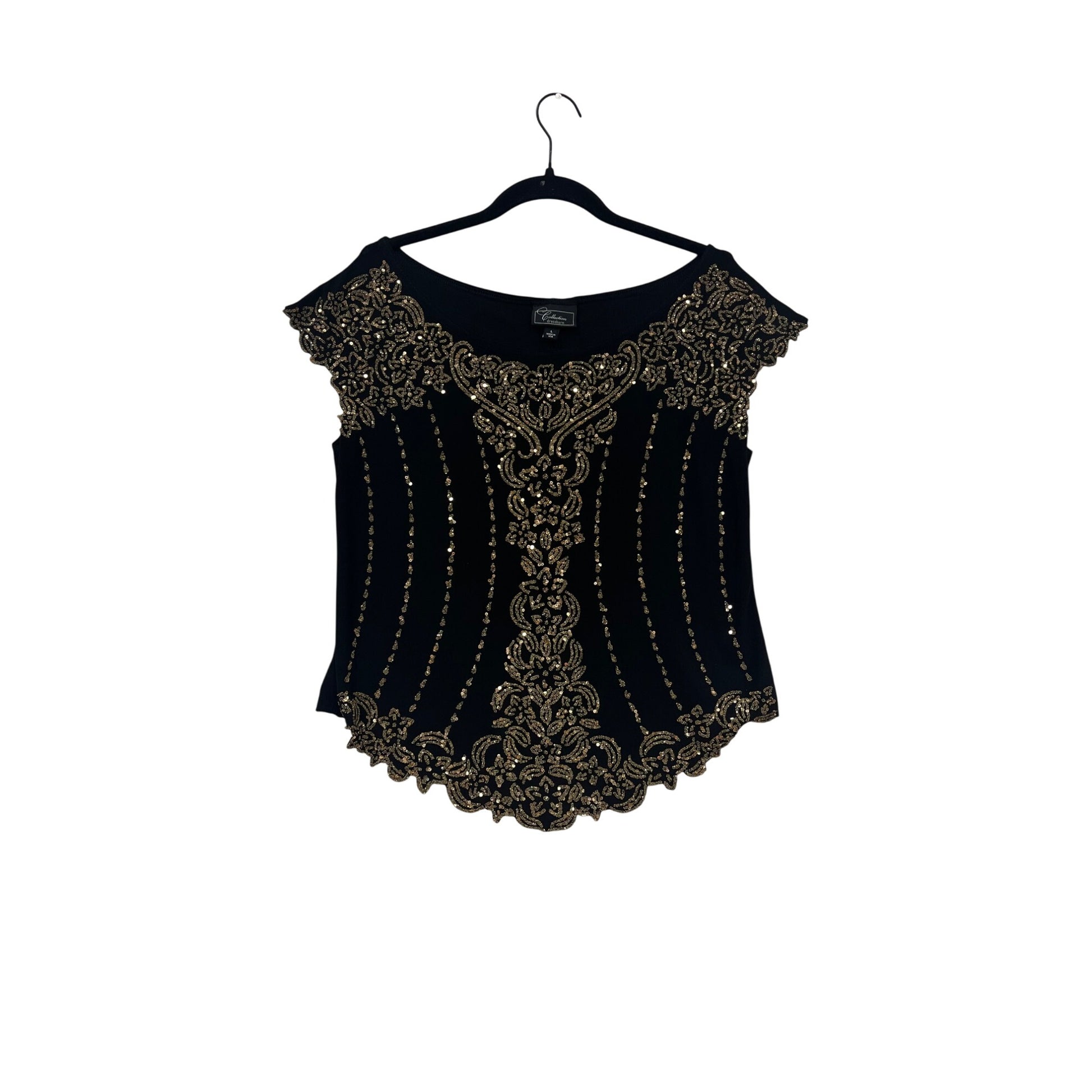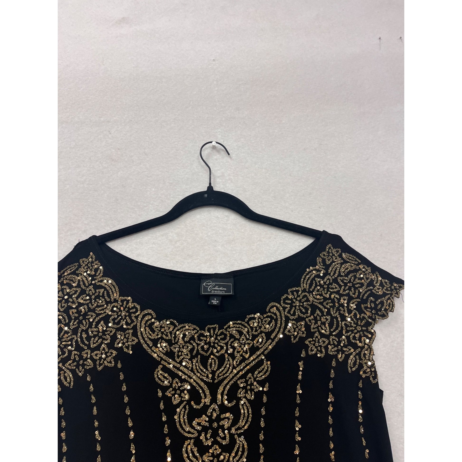 Dressbarn Collection Black & Gold Sequined Top L #308A
