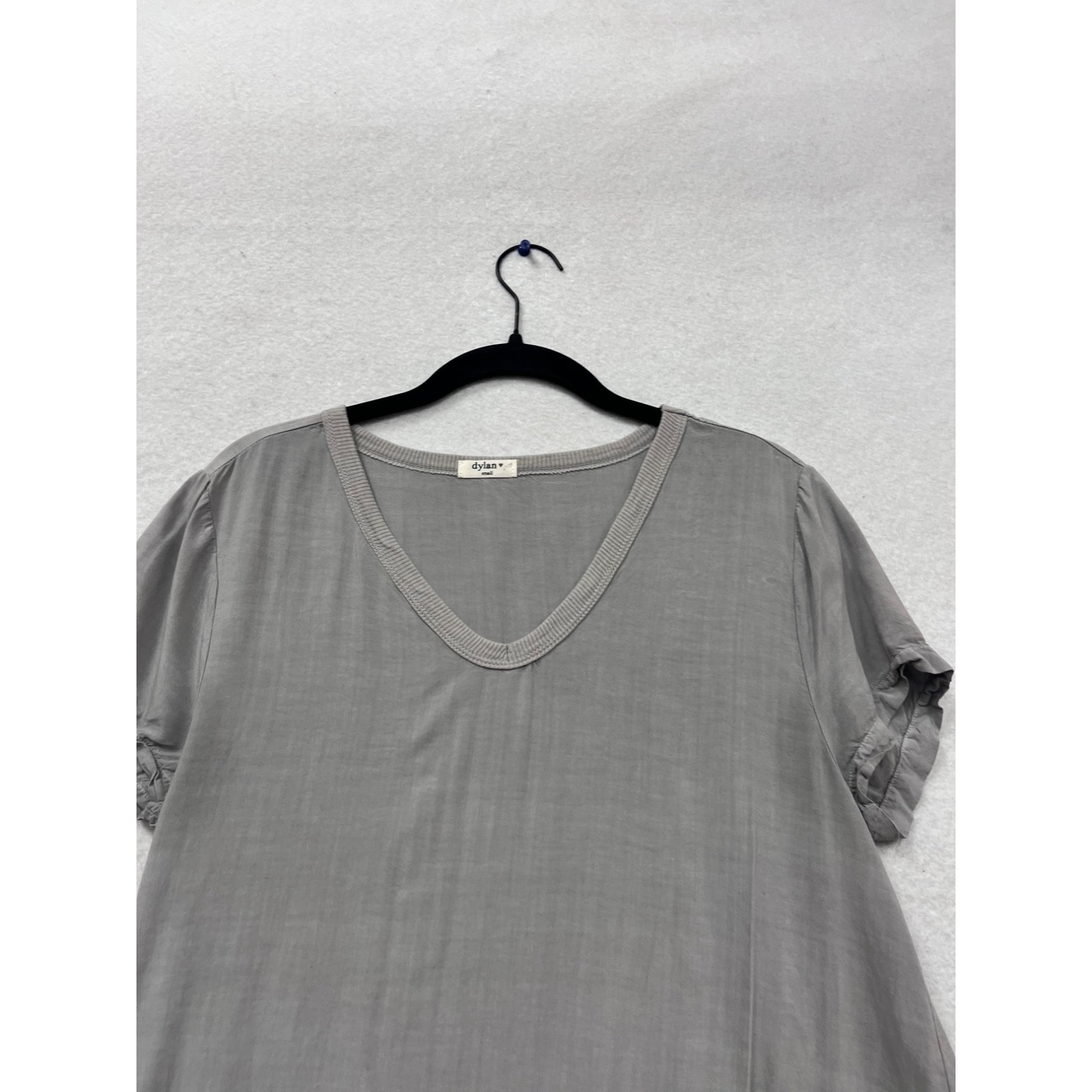 Dylan Grey V-Neck Short Sleeve Blouse Small #477A