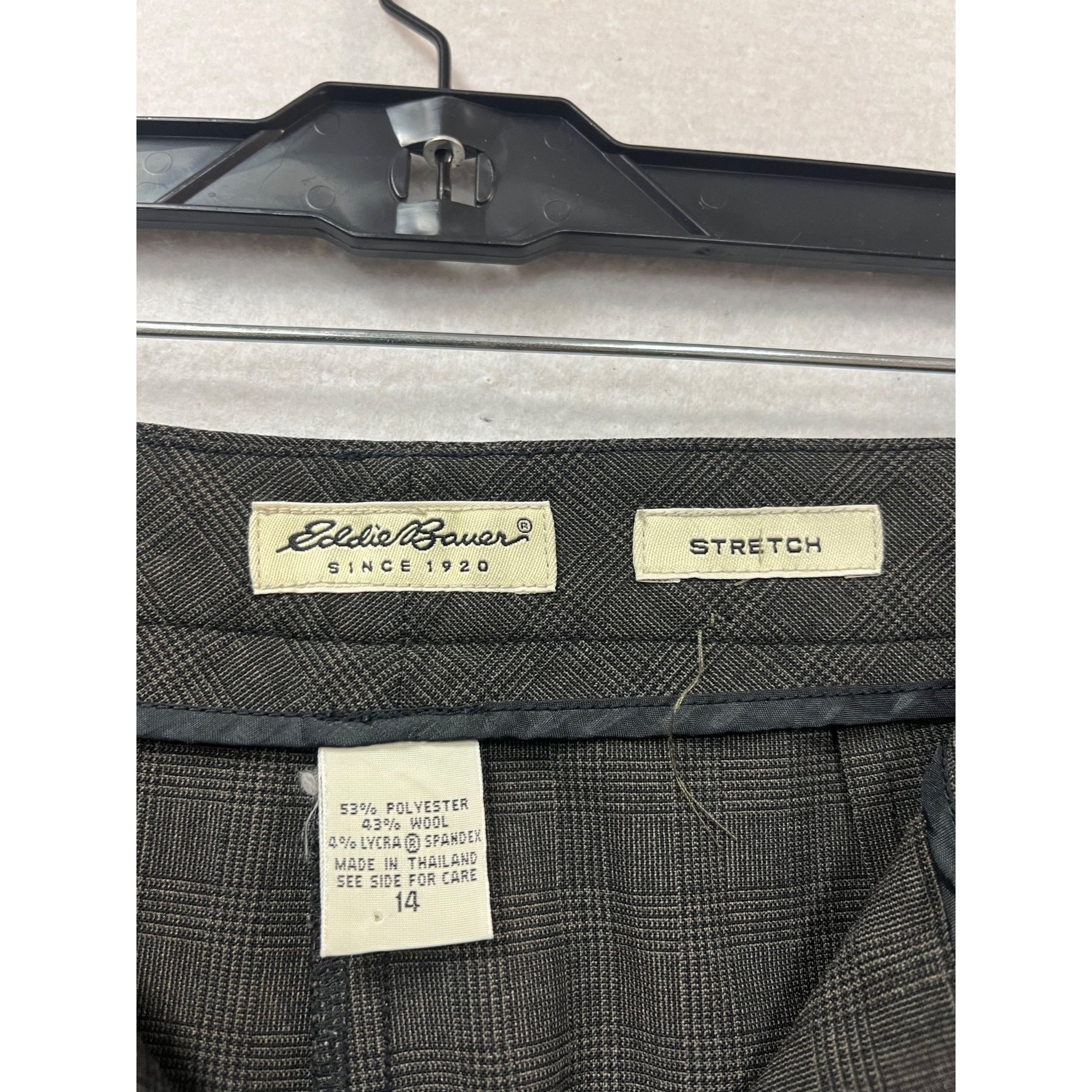 These vintage-inspired stretch trousers from Eddie Bauer feature a subtle plaid design and a wide-leg cut, offering timeless elegance and versatile styling.