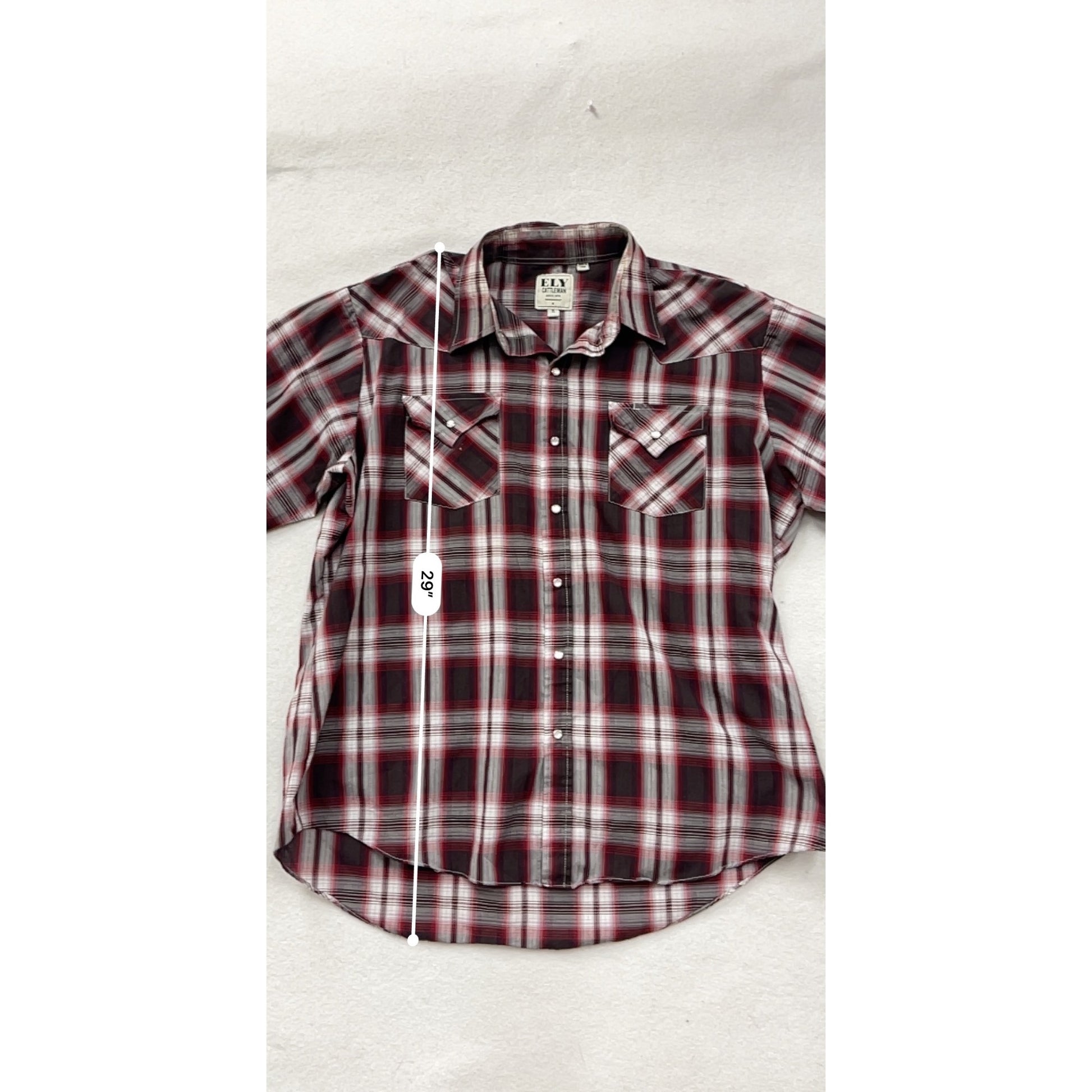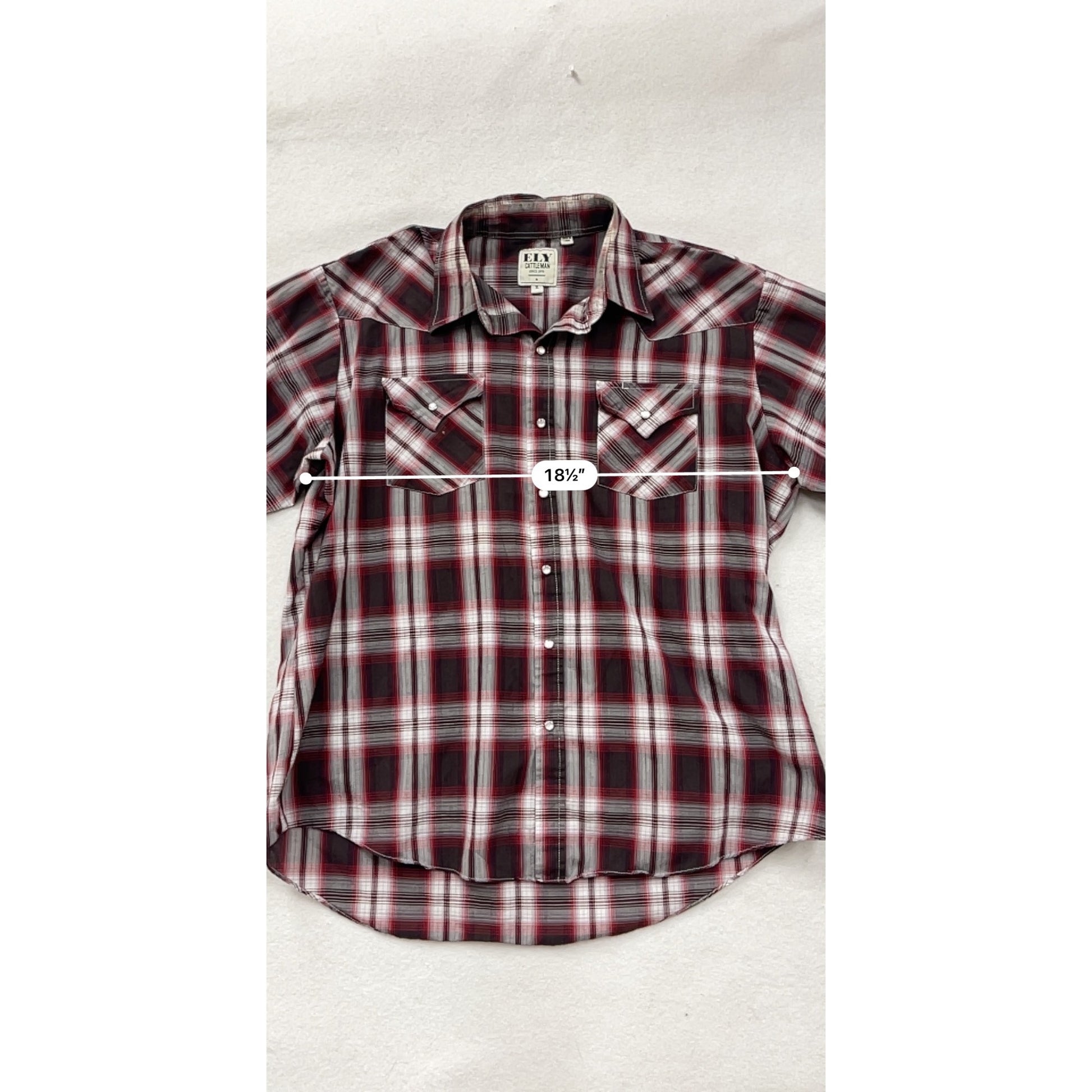 Ely Cattleman XL Red & Black Plaid Western Snap Button Shirt #8697