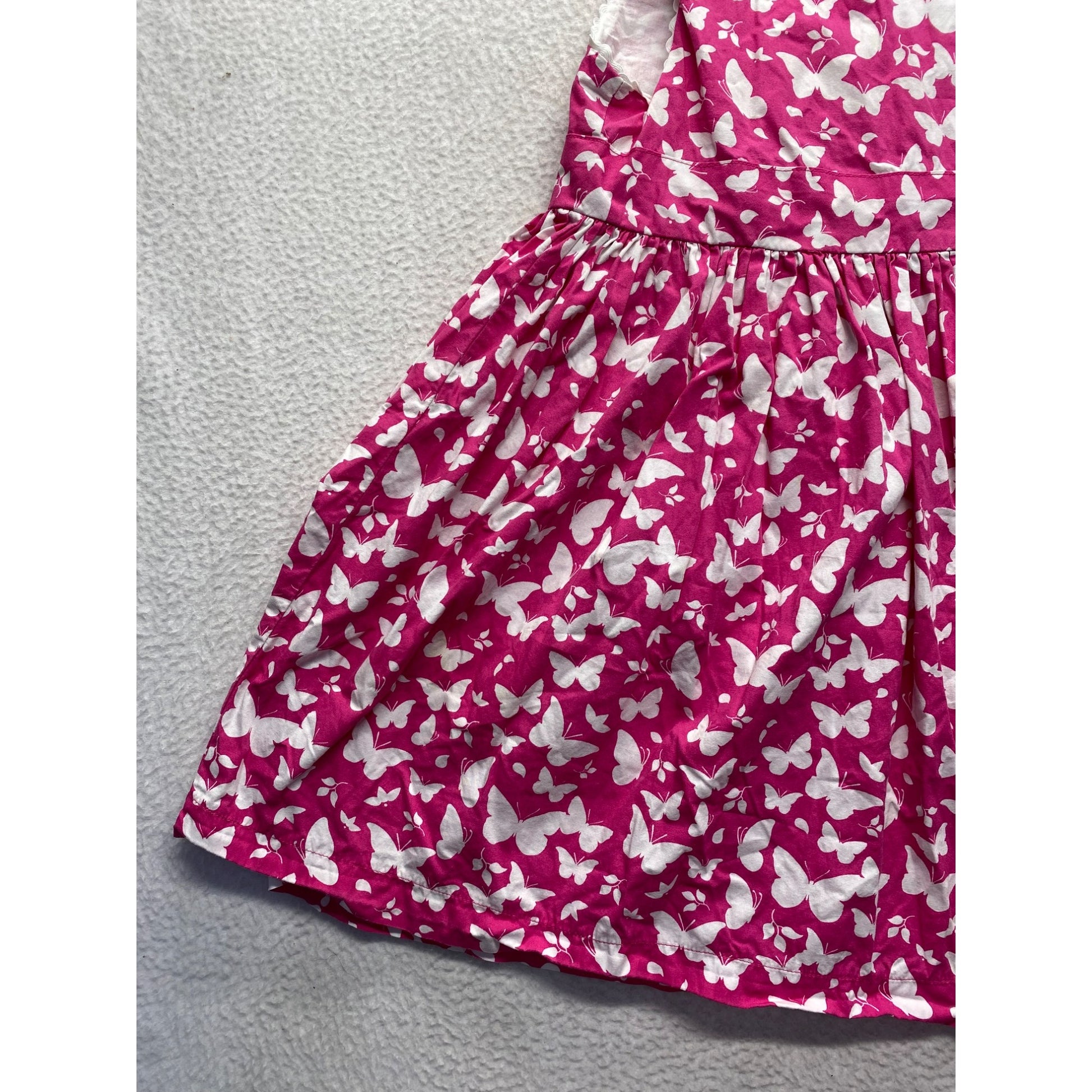 A charming EPK dress designed in France, showcasing a whimsical butterfly pattern on a vibrant pink backdrop. Crafted from 100% cotton, this sleeveless dress ensures comfort and breathability. The dress features a full skirt for twirling fun and buttons down the back for easy dressing.