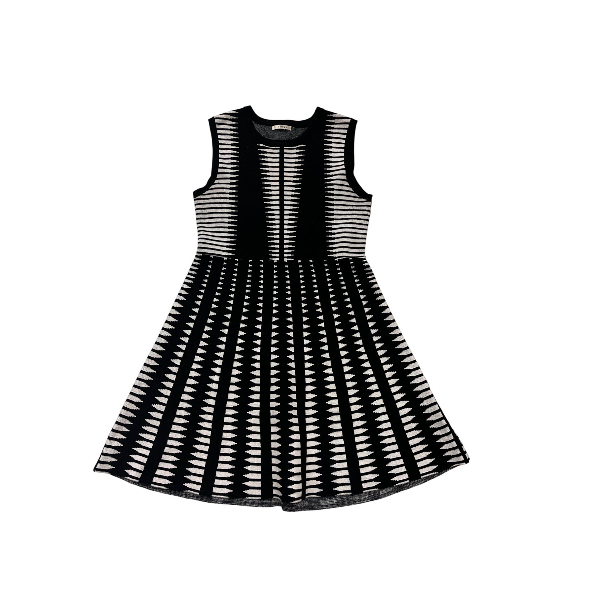 Esley Black & White Sleeveless A-Line Dress With Geometric Pattern #403A