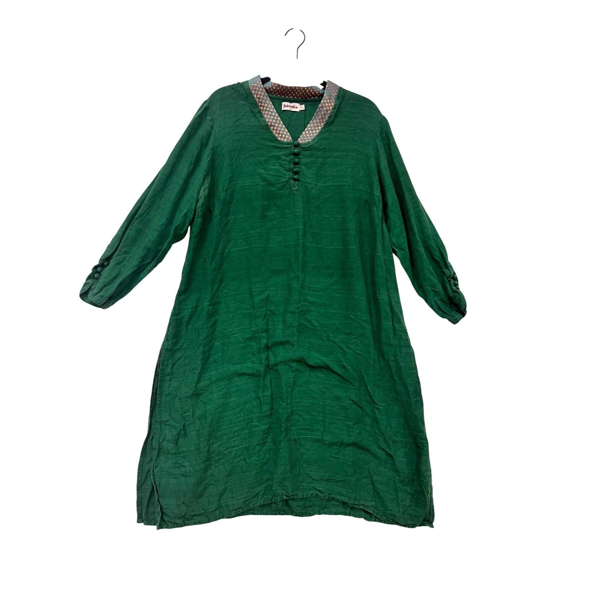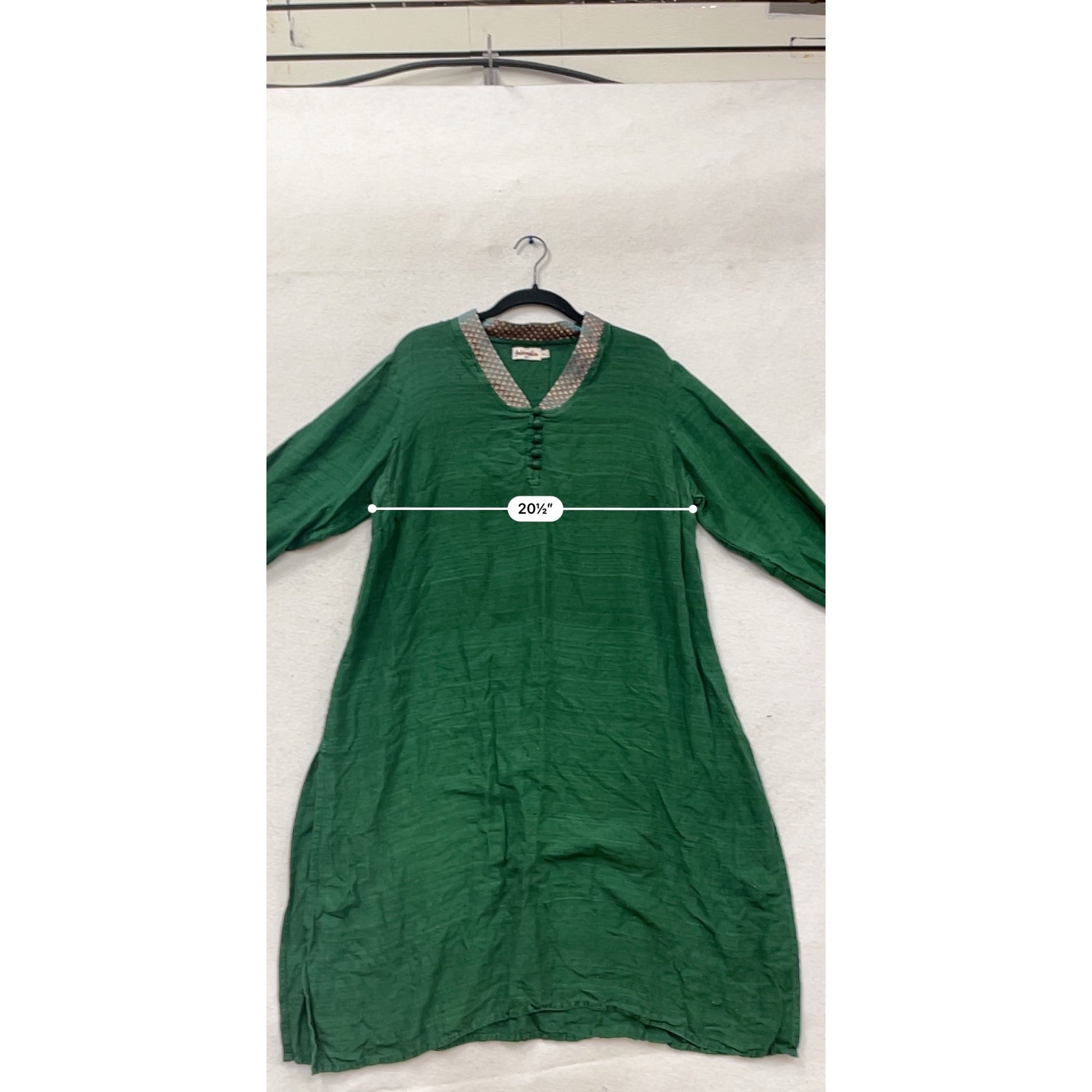 Fabindia Womens Green Silk Kurta With Printed Collar & Button Detail XL #408A
