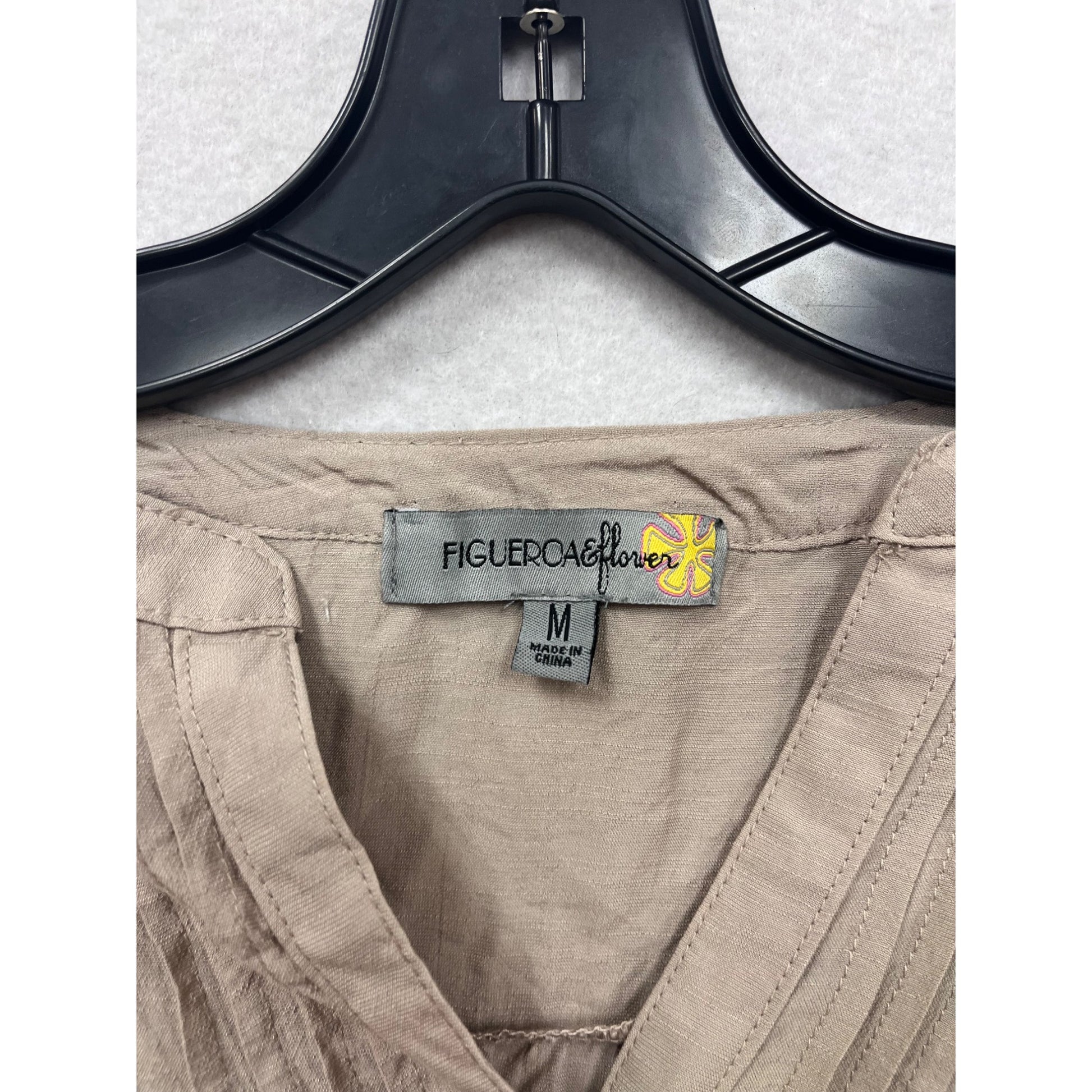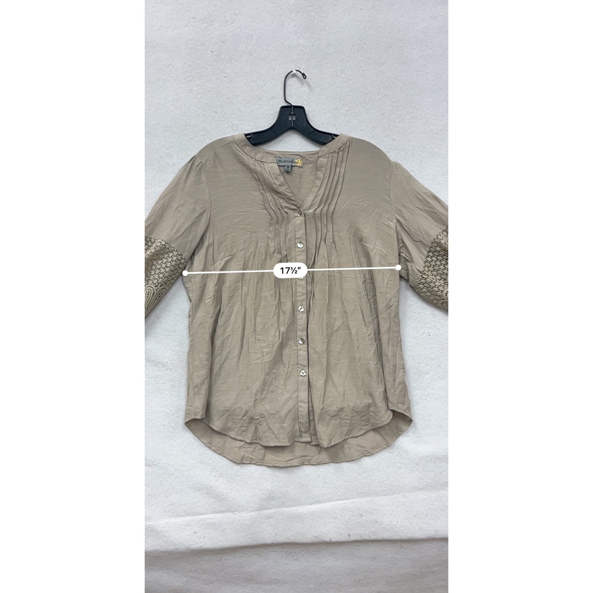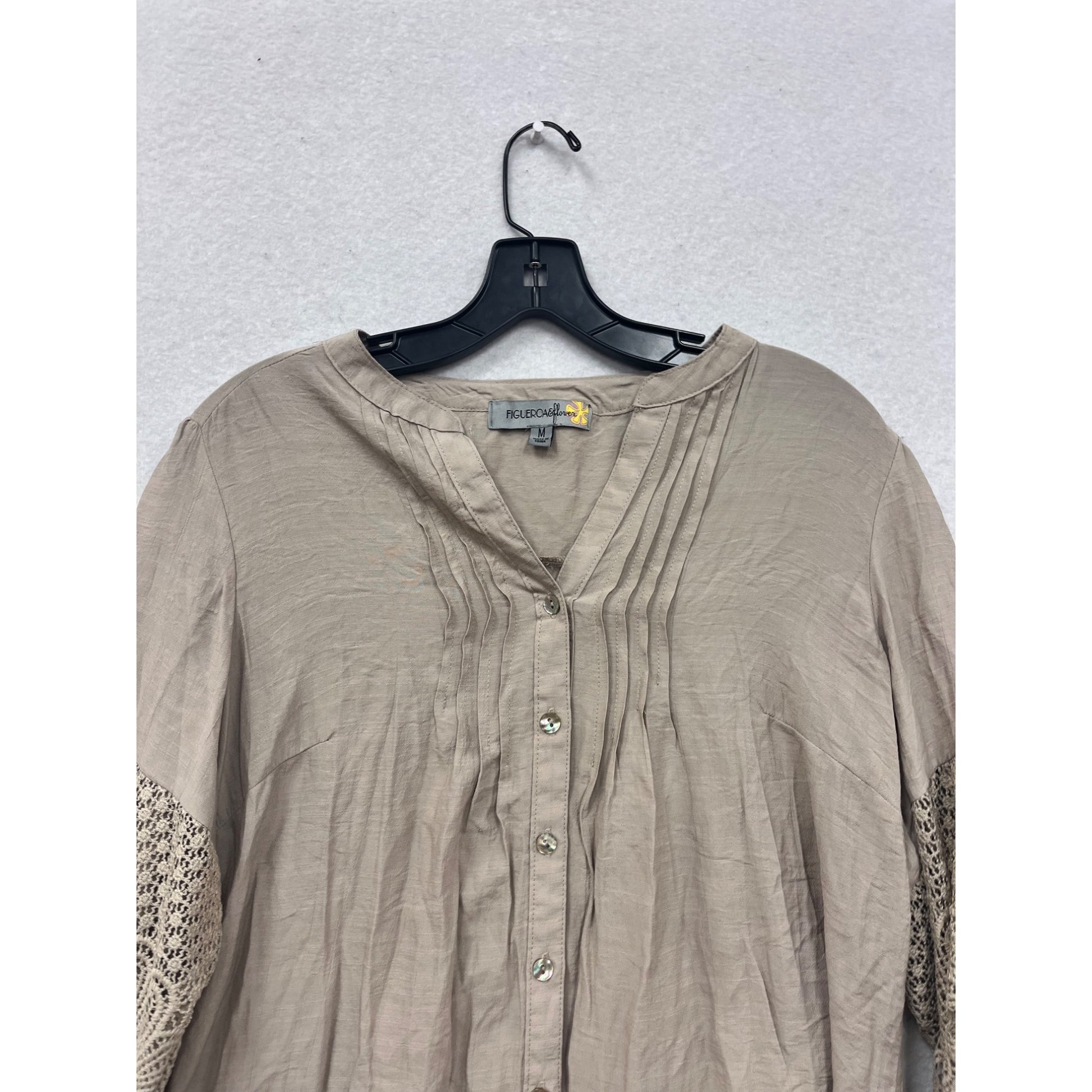 Figueroa & Flower Womens Medium Button-Down Blouse W/ Crochet Sleeves #8409