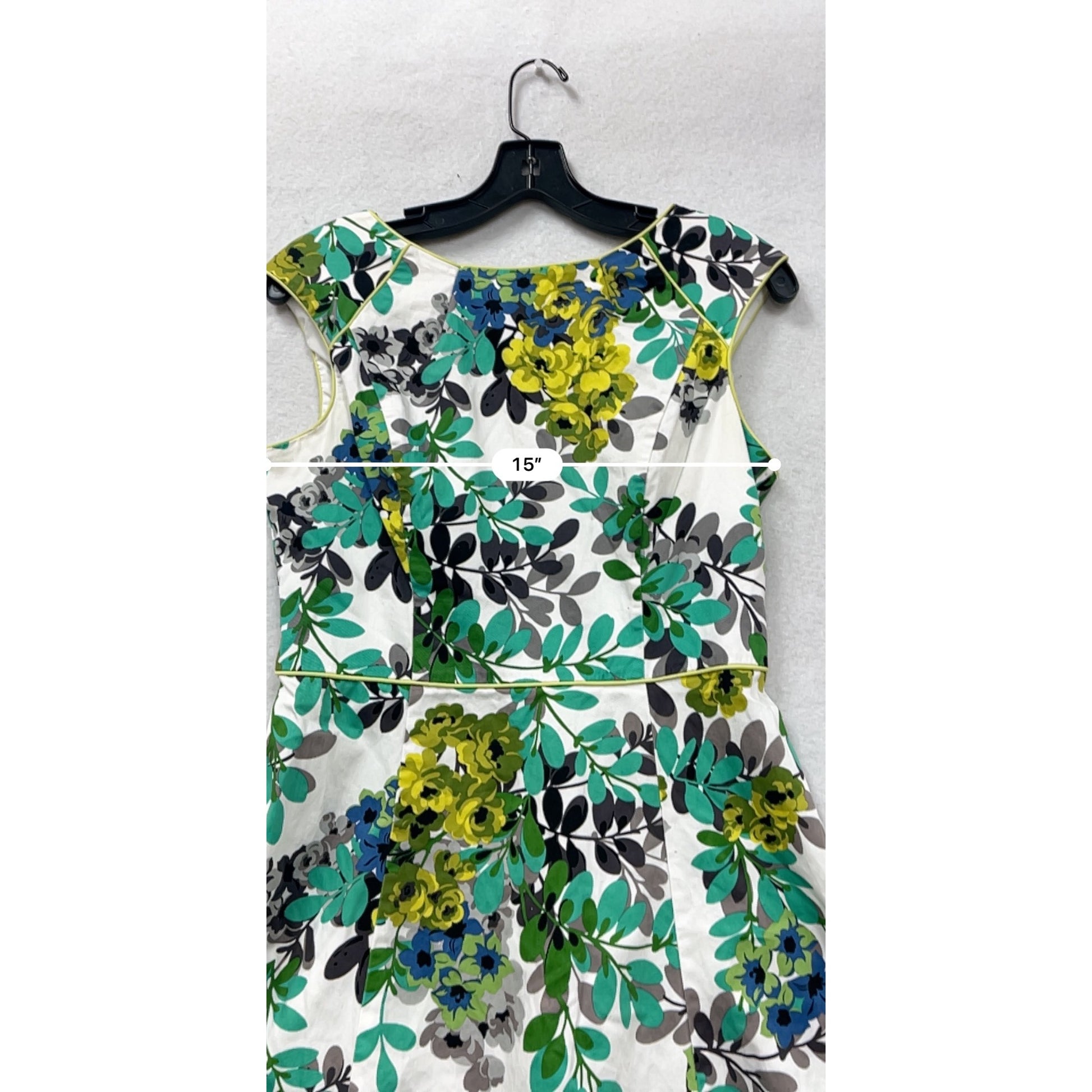 This professionally designed dress offers a vibrant floral pattern, ideal for occasions requiring a blend of elegance and comfort. Made from a cotton-spandex blend, it ensures a comfortable fit while maintaining a flattering silhouette. The sleeveless design and fit and flare style add a modern touch to your wardrobe.