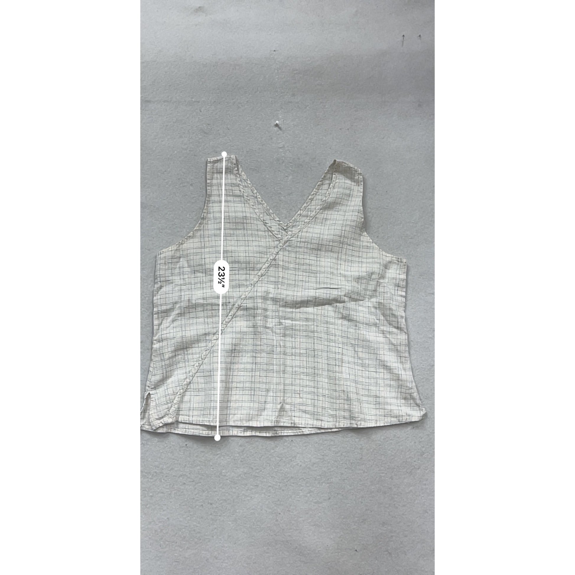 This sleeveless top is crafted from 100% linen, providing a breathable and comfortable fit. Its plaid pattern offers a timeless appeal, while the large size ensures a relaxed, easy-to-wear style. Suitable for summer wear, this top is both functional and stylish for any wardrobe.