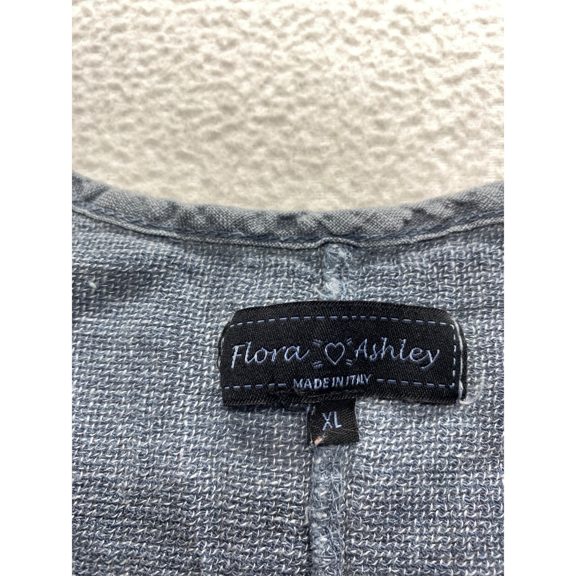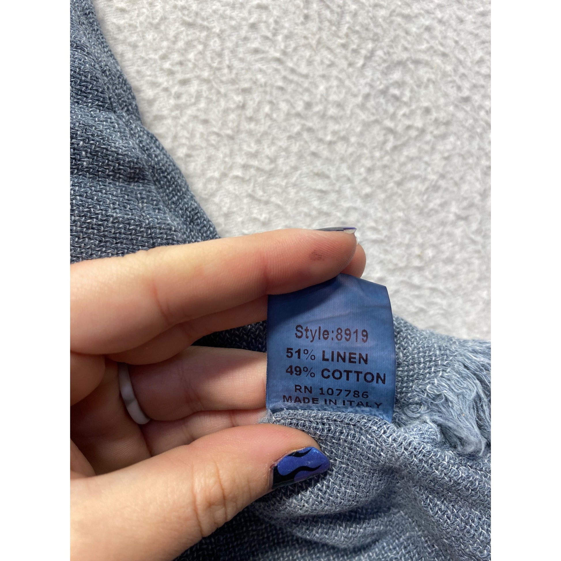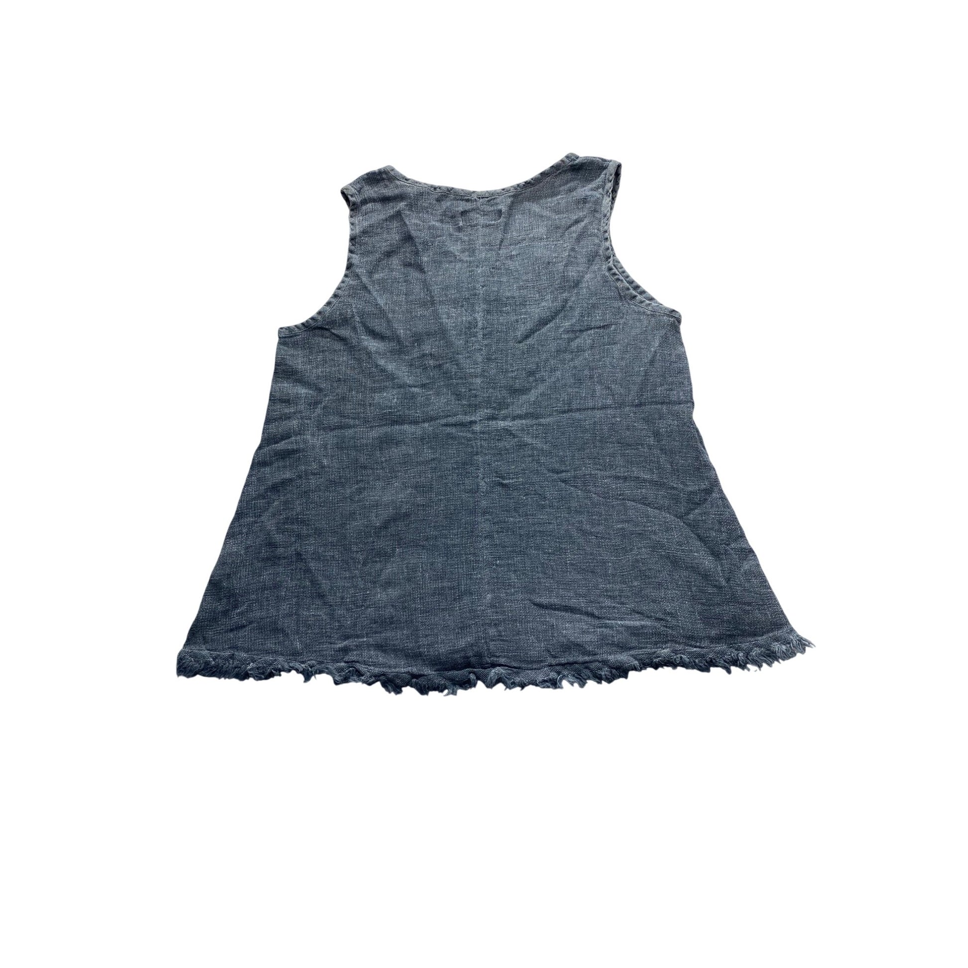 Flora Ashley Womens Blue Linen-Cotton Frayed Hem Sleeveless Top #7344