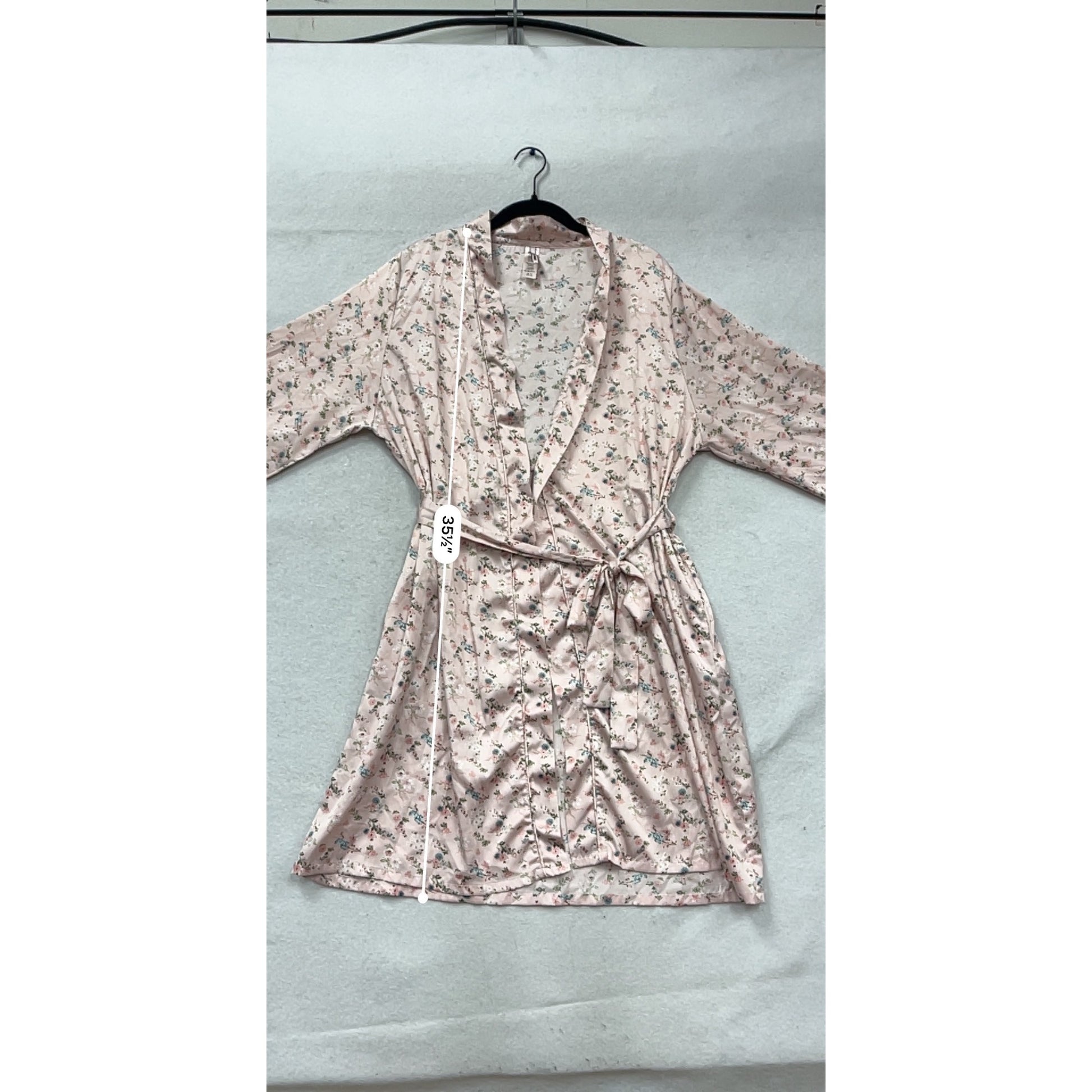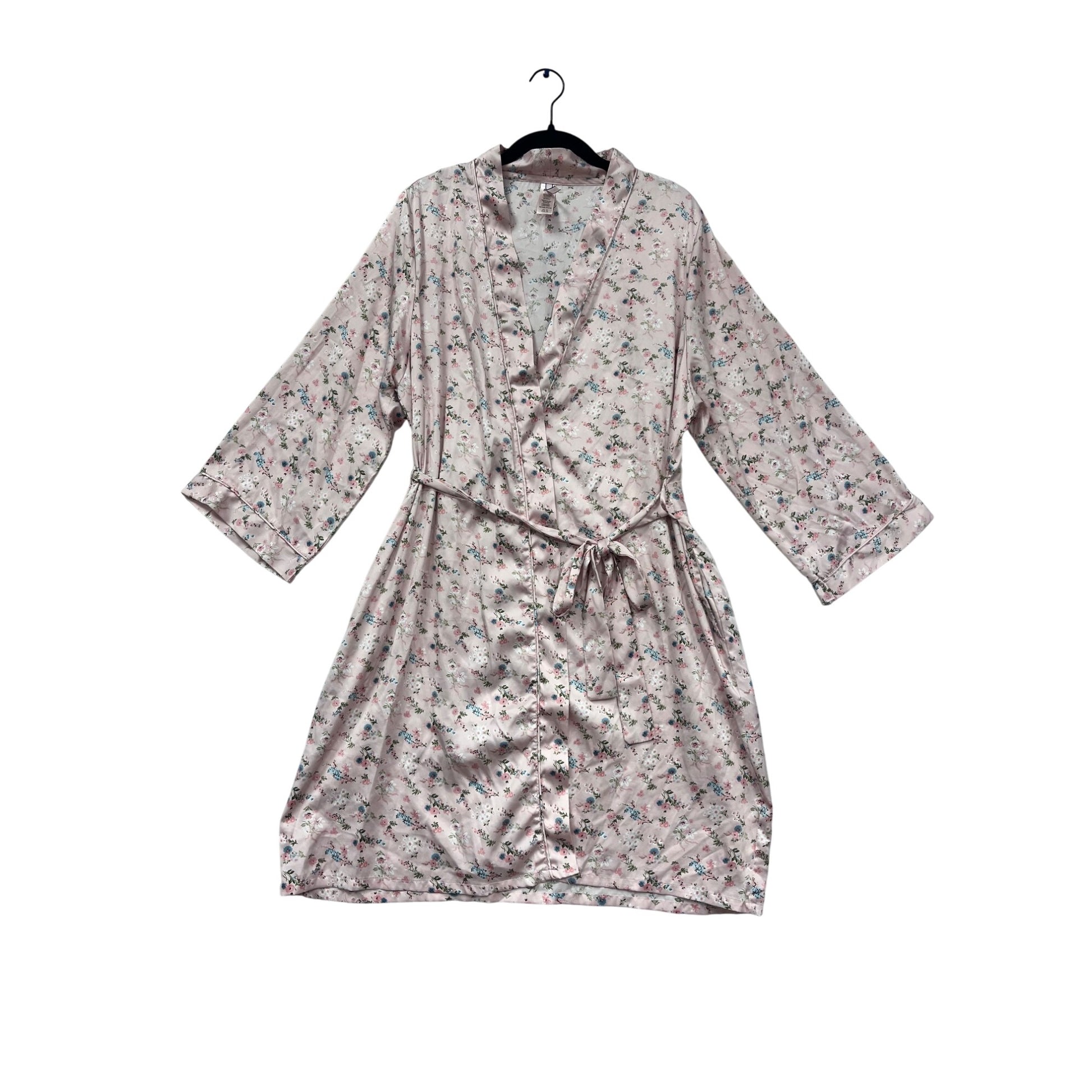 This floral satin robe by Max, crafted with a soft and smooth texture, provides comfort and style. Its kimono wrap design is practical and elegant, suitable for lounging.