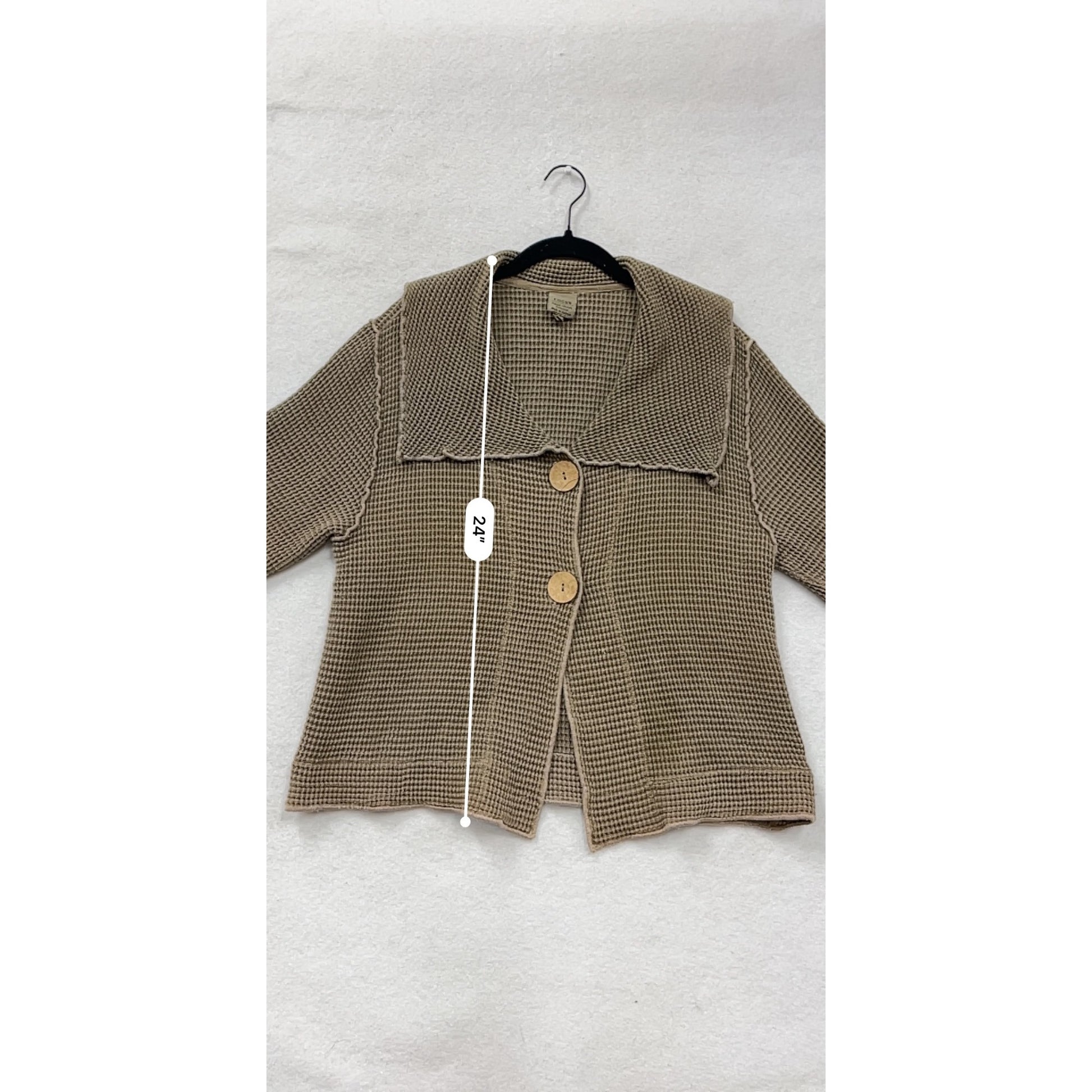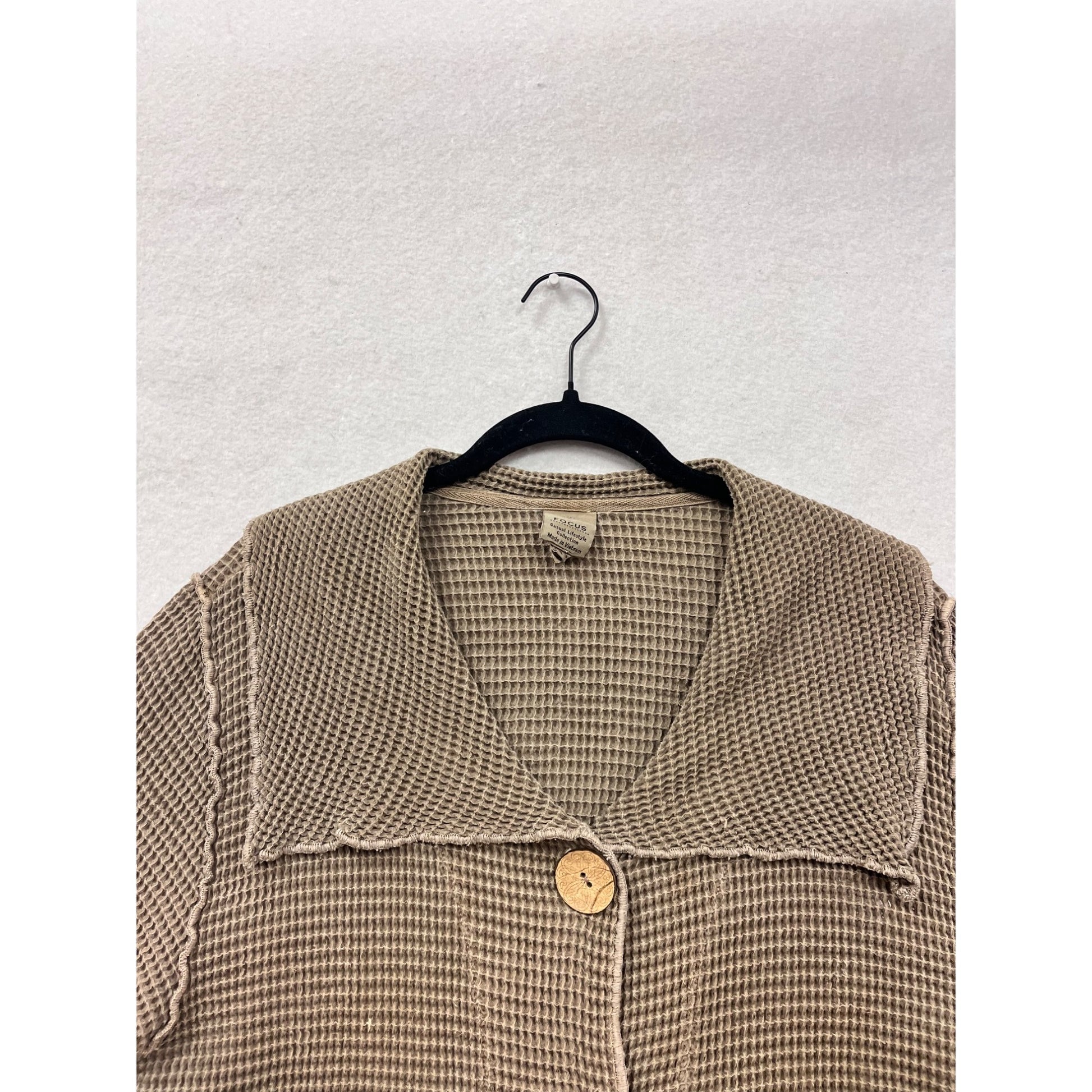 This women's cardigan features a waffle-knit texture, flared sleeves, and button closures. Its lightweight cotton material ensures comfort for daily wear.