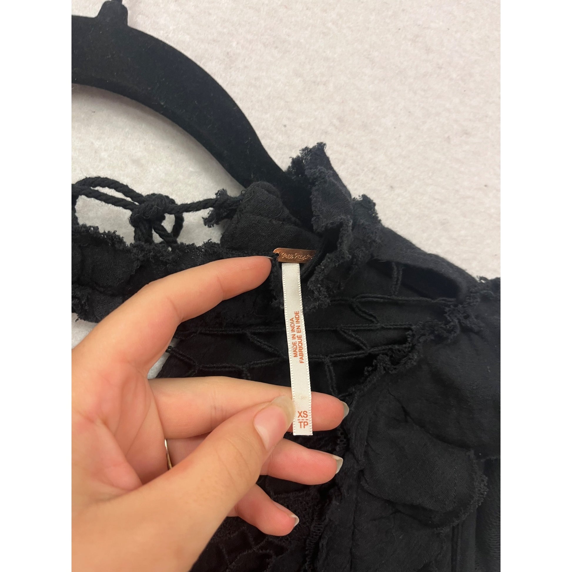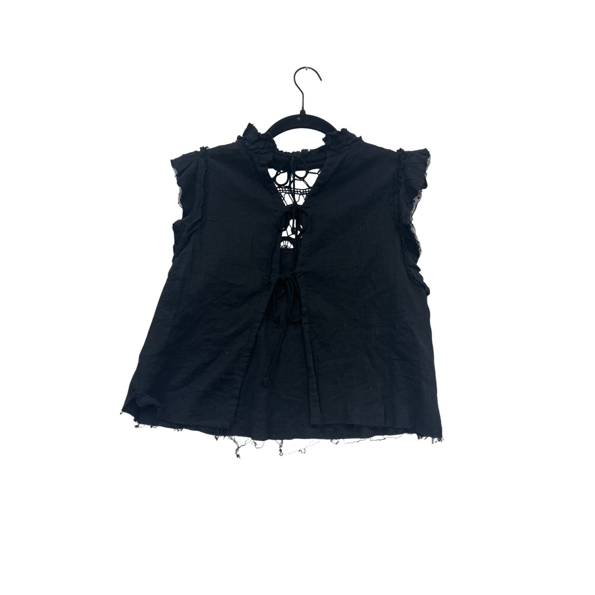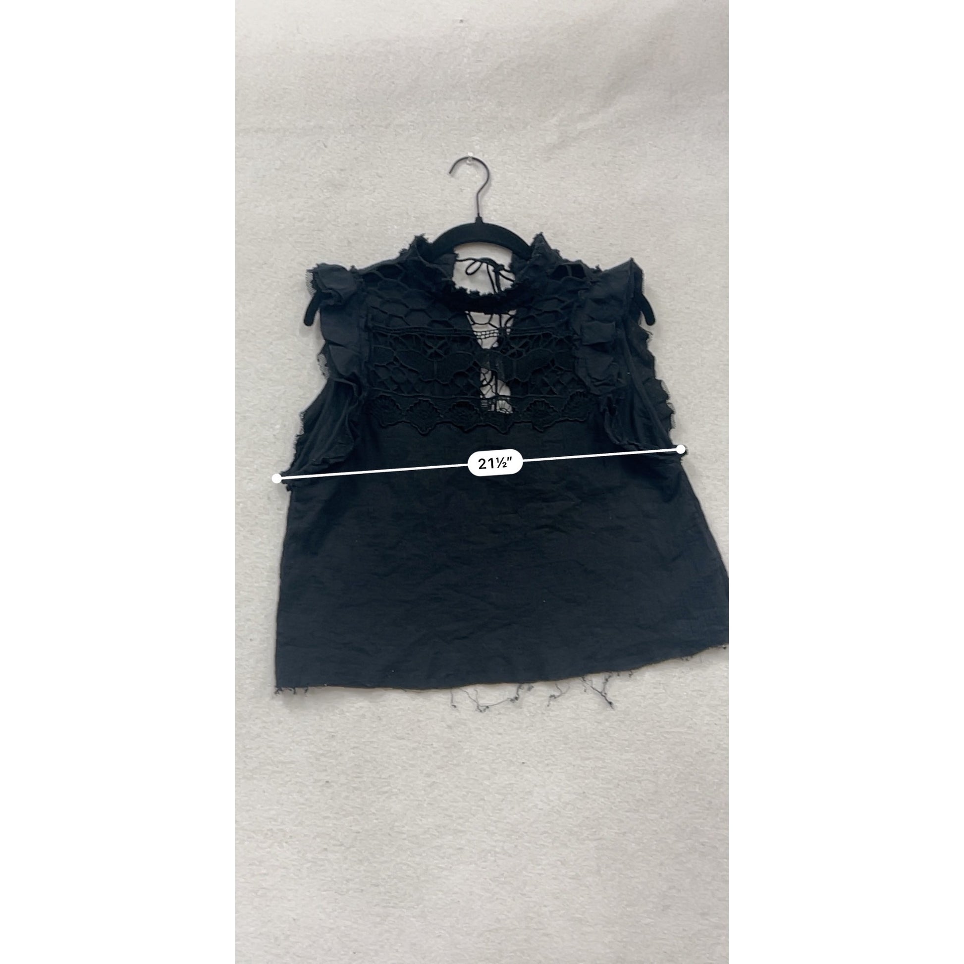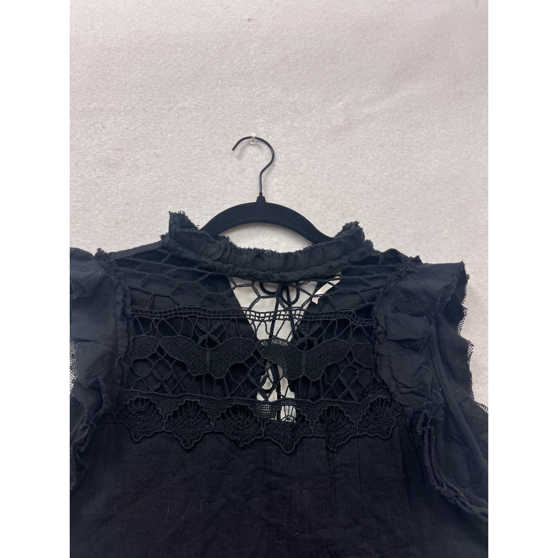 Free People XS Black Crochet Top With Ruffles & Lace Details #293A