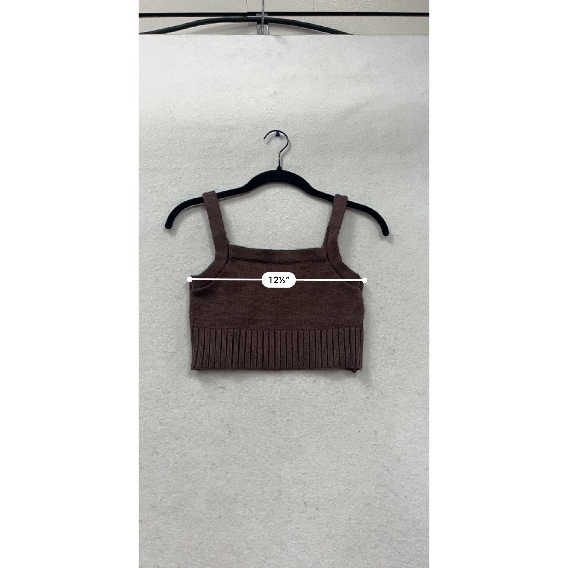 This Garage knit crop top in brown offers a stylish and comfortable addition to any wardrobe. Its stretchy fabric ensures a snug fit, while the ribbed hem provides added texture. Ideal for layering or wearing on its own, it suits various casual occasions.