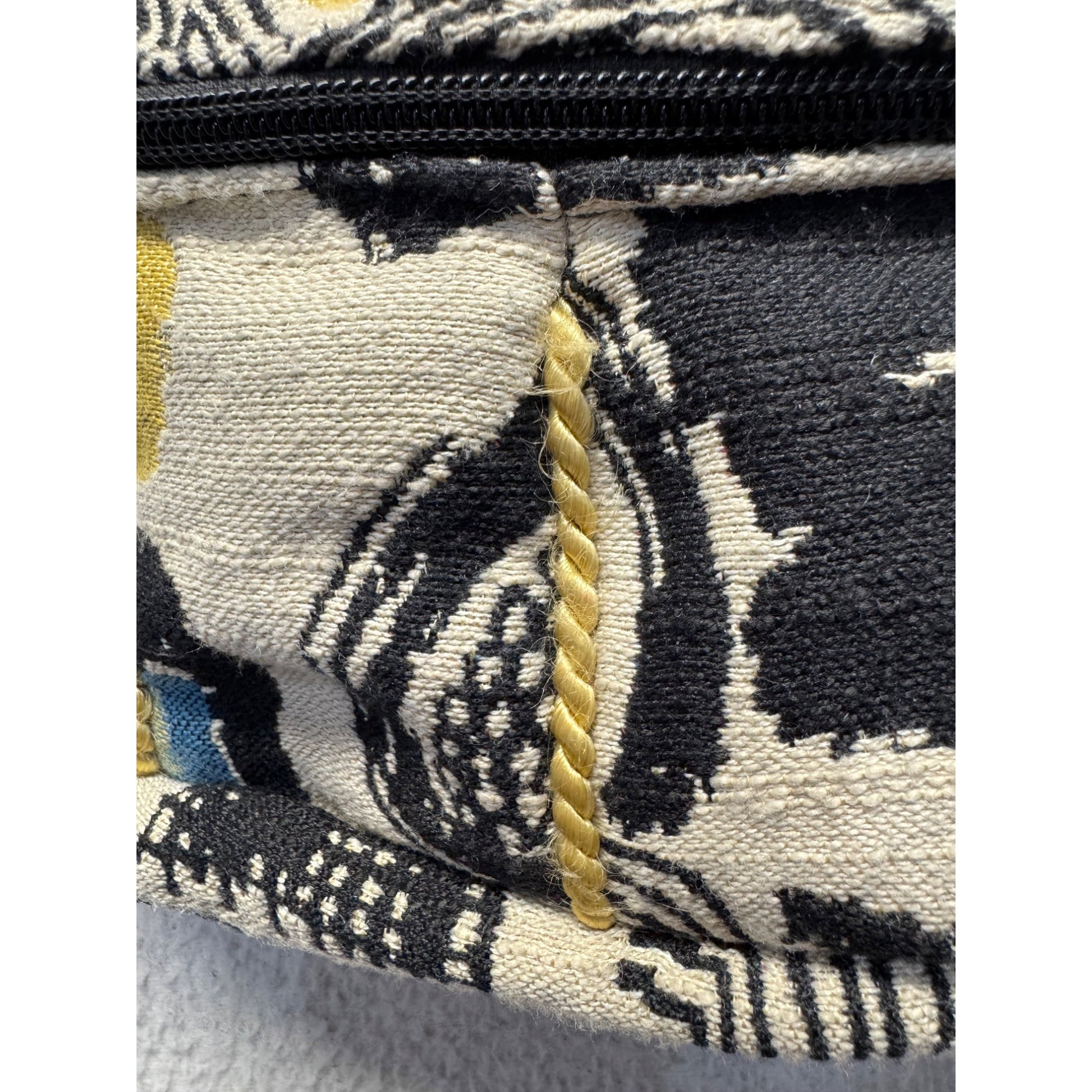 Small fabric tear near zipper, approx 1/2 inch. Length 6.5", Width 4.5"