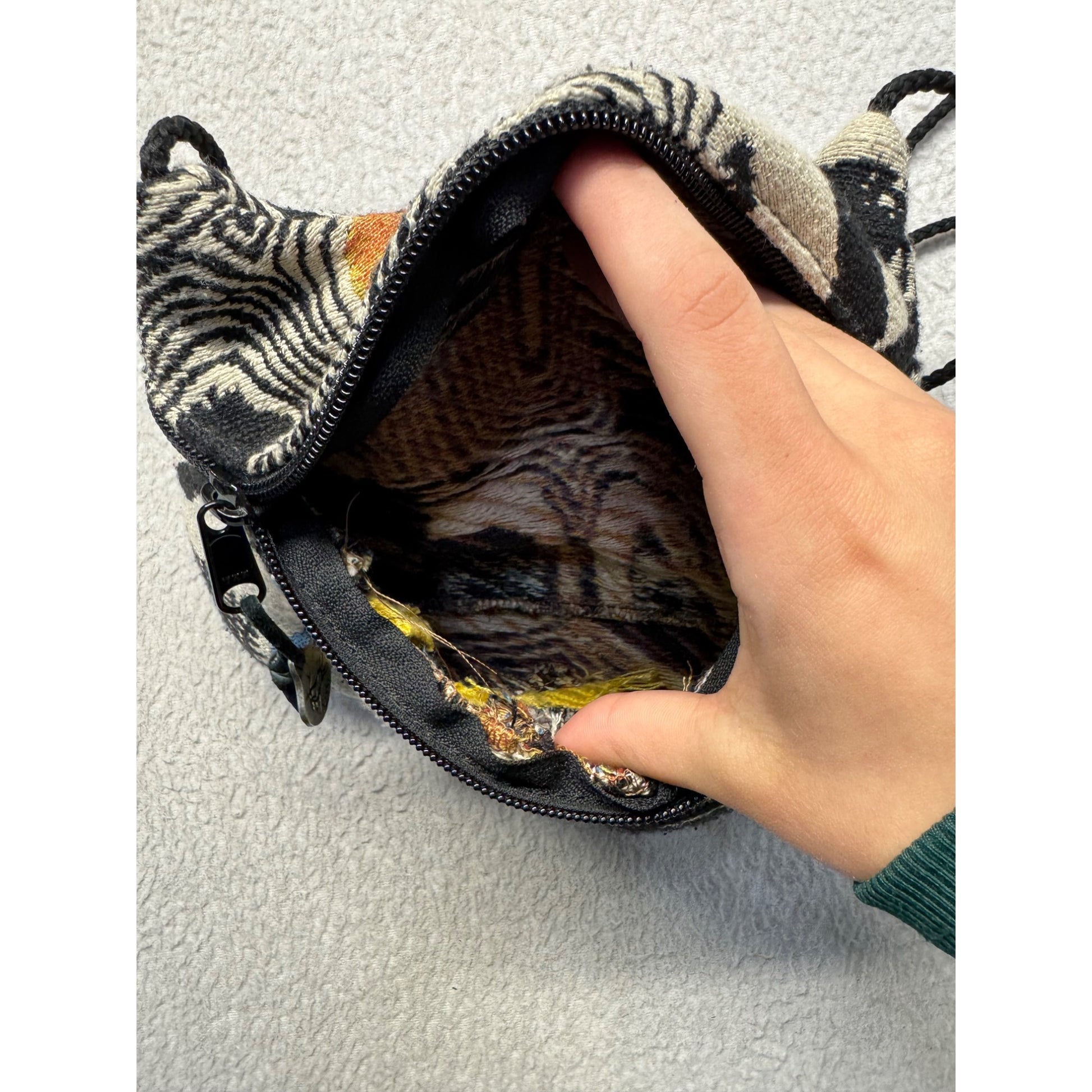 • Black zipper closure