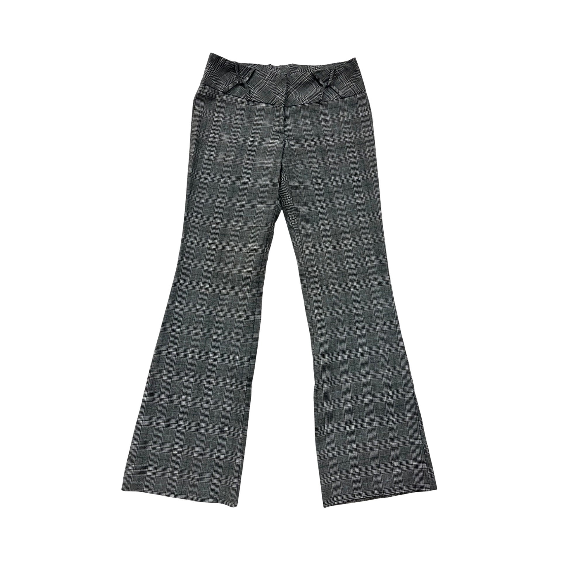 These gray plaid dress pants by Vanity feature a stylish and professional bootcut design. The fabric blend ensures both comfort and durability for daily wear.