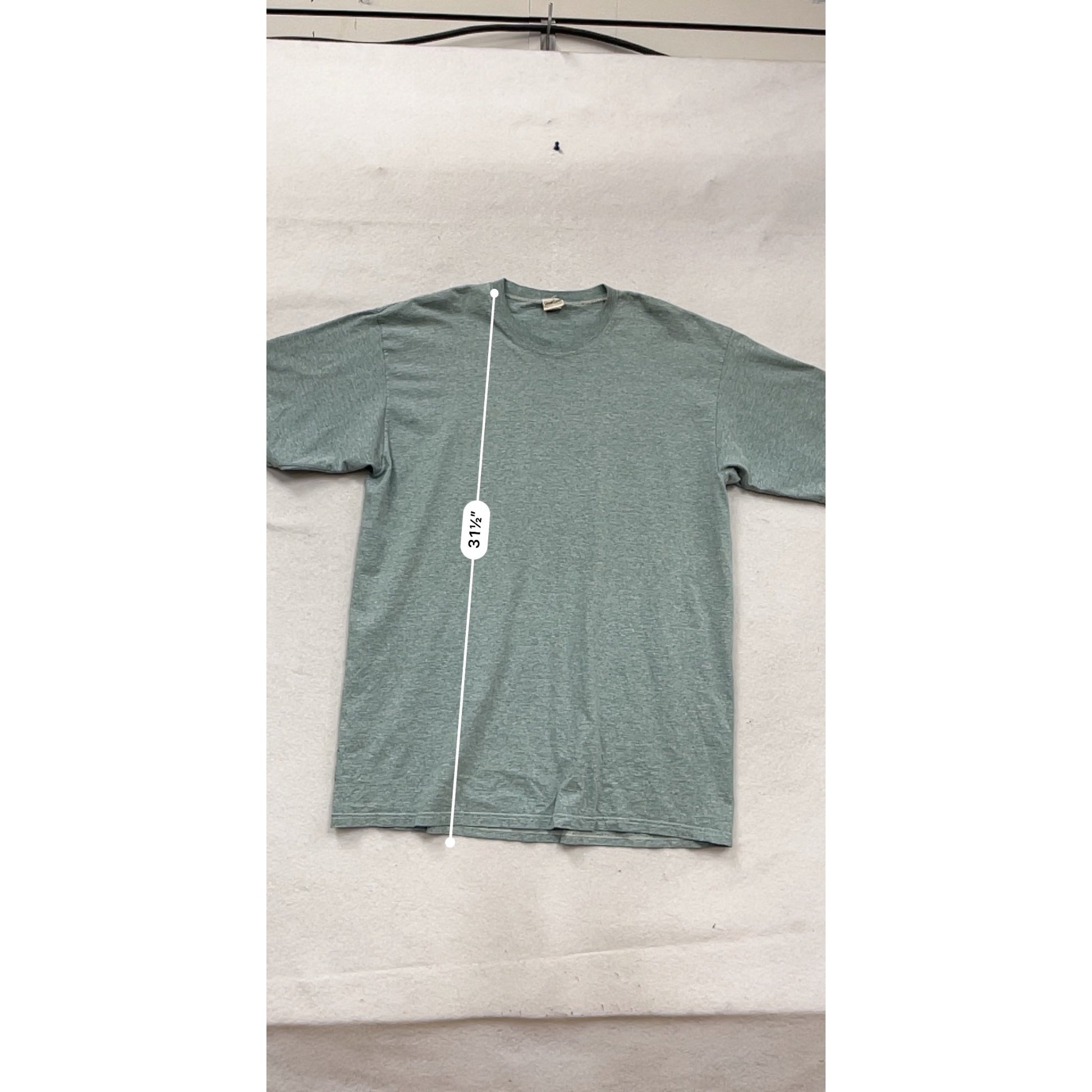 This GreatLand men's T-shirt in large size is crafted from a blend of cotton and polyester, offering comfort and durability. Its versatile gray color and classic crew neck design make it suitable for various casual settings.