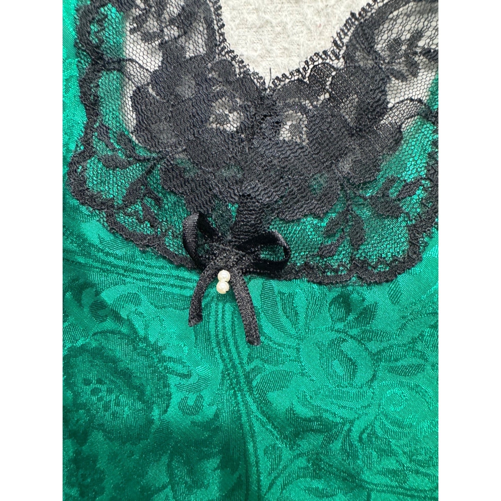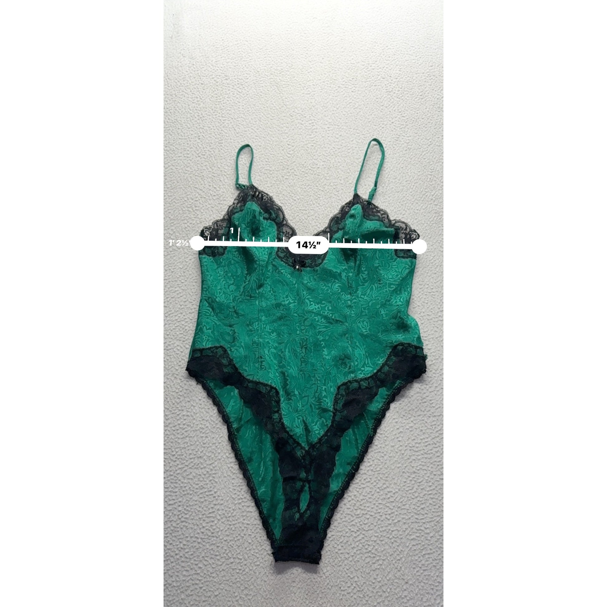 Green Lace Bodysuit With Black Trim & Bow Detail Size S Delicates #9578