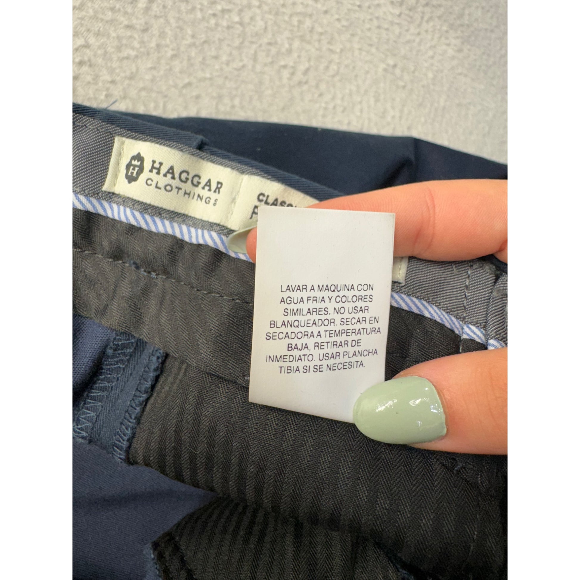 Haggar Mens Classic Fit Navy Premium Pants 36x29 Cotton Blend #7786