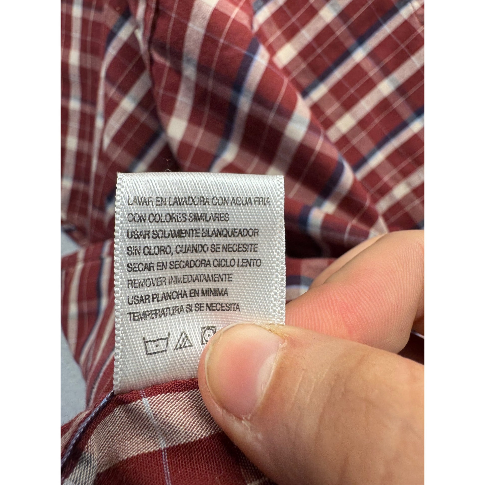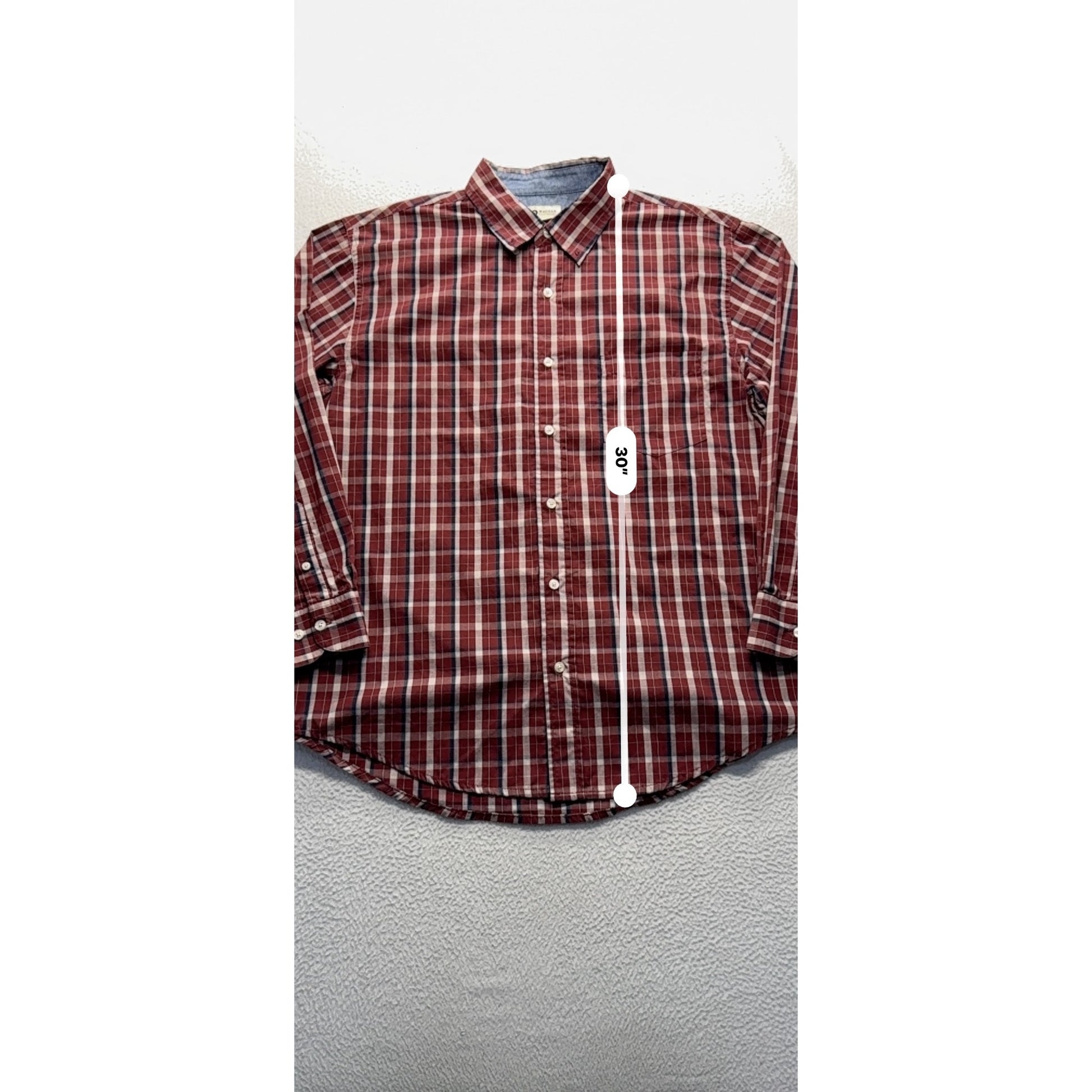 Haggar Red & White Plaid Long Sleeve Button-Up Shirt L #9283
