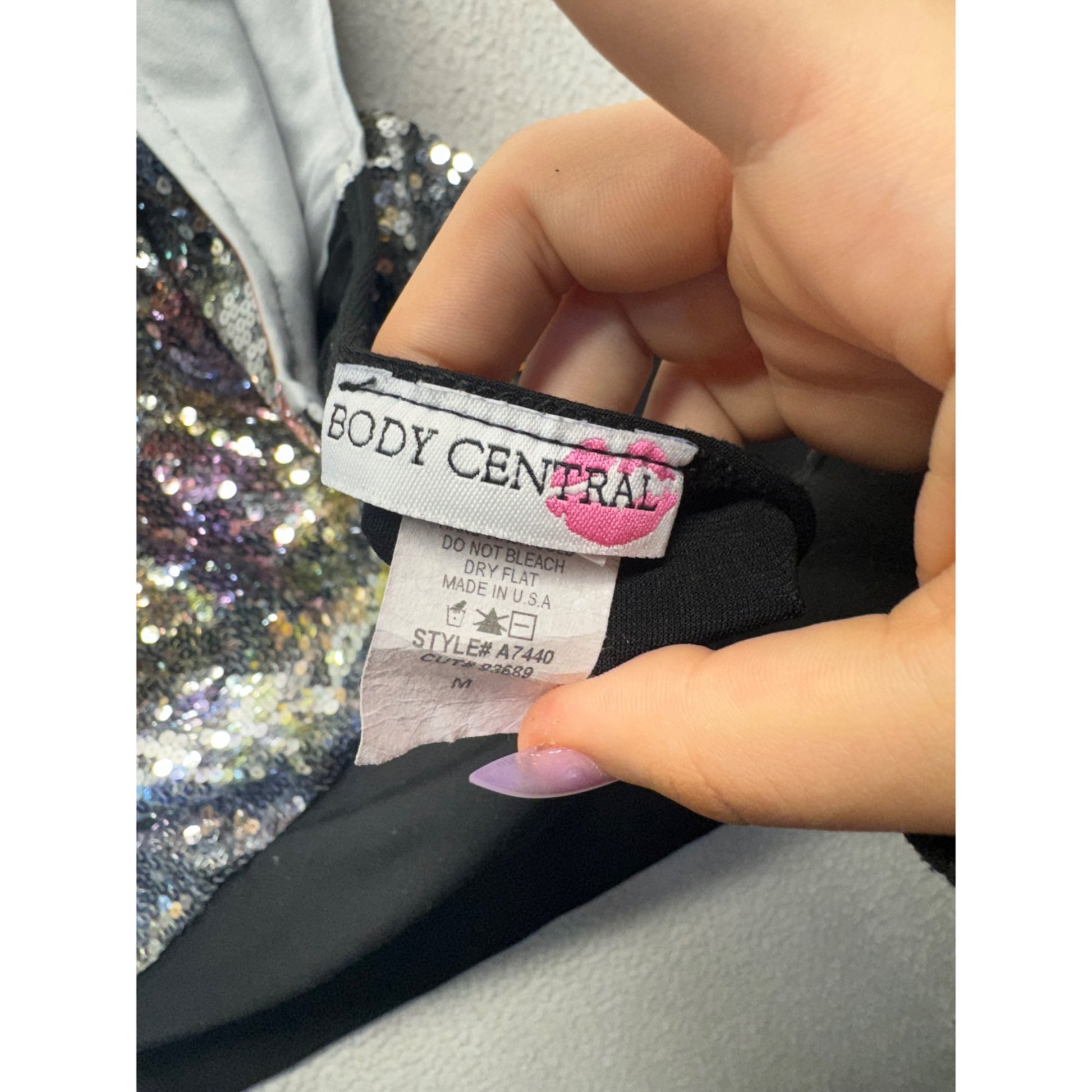 Halter Sequin Tank Top By Body Central With Black Trim Adjustable Size M #9539