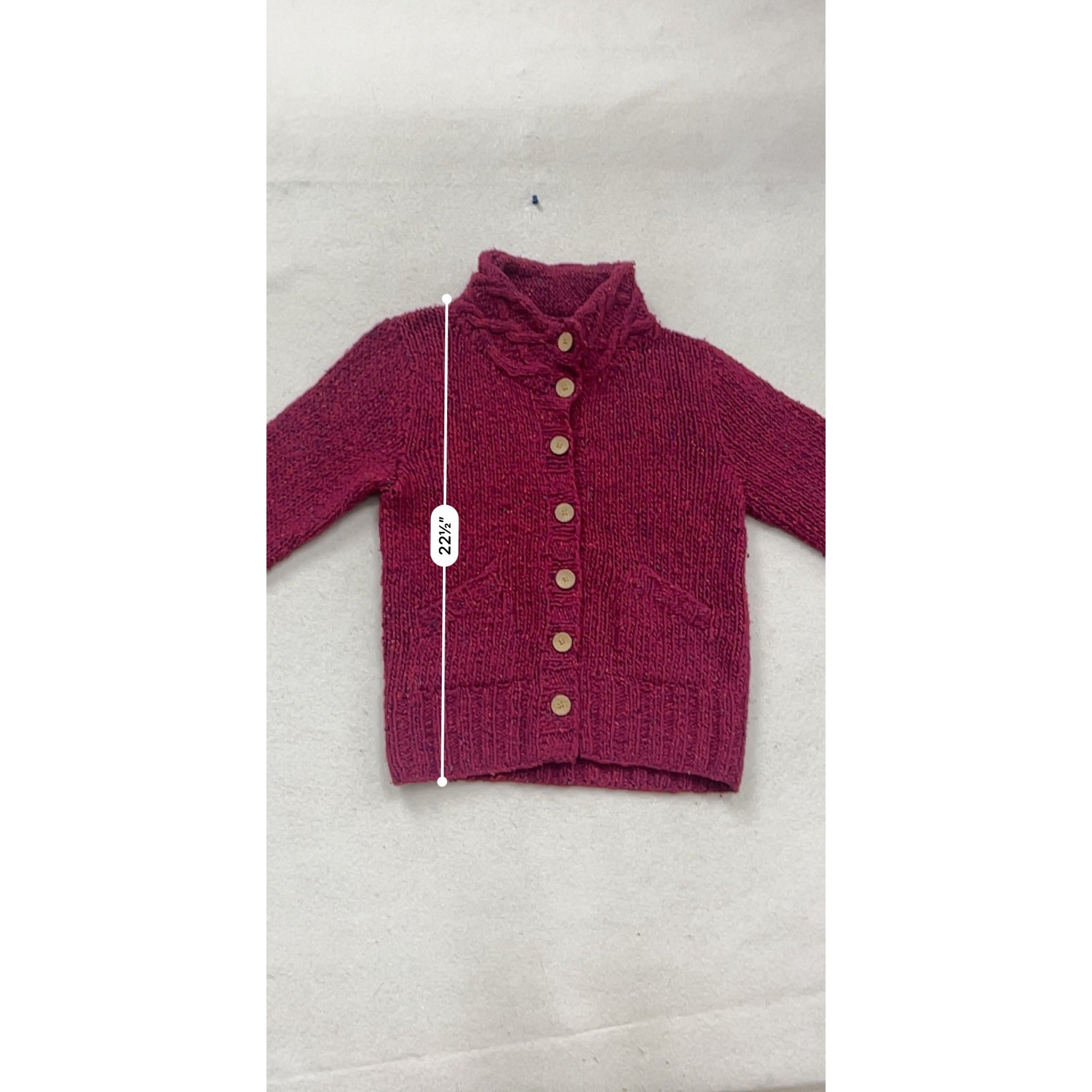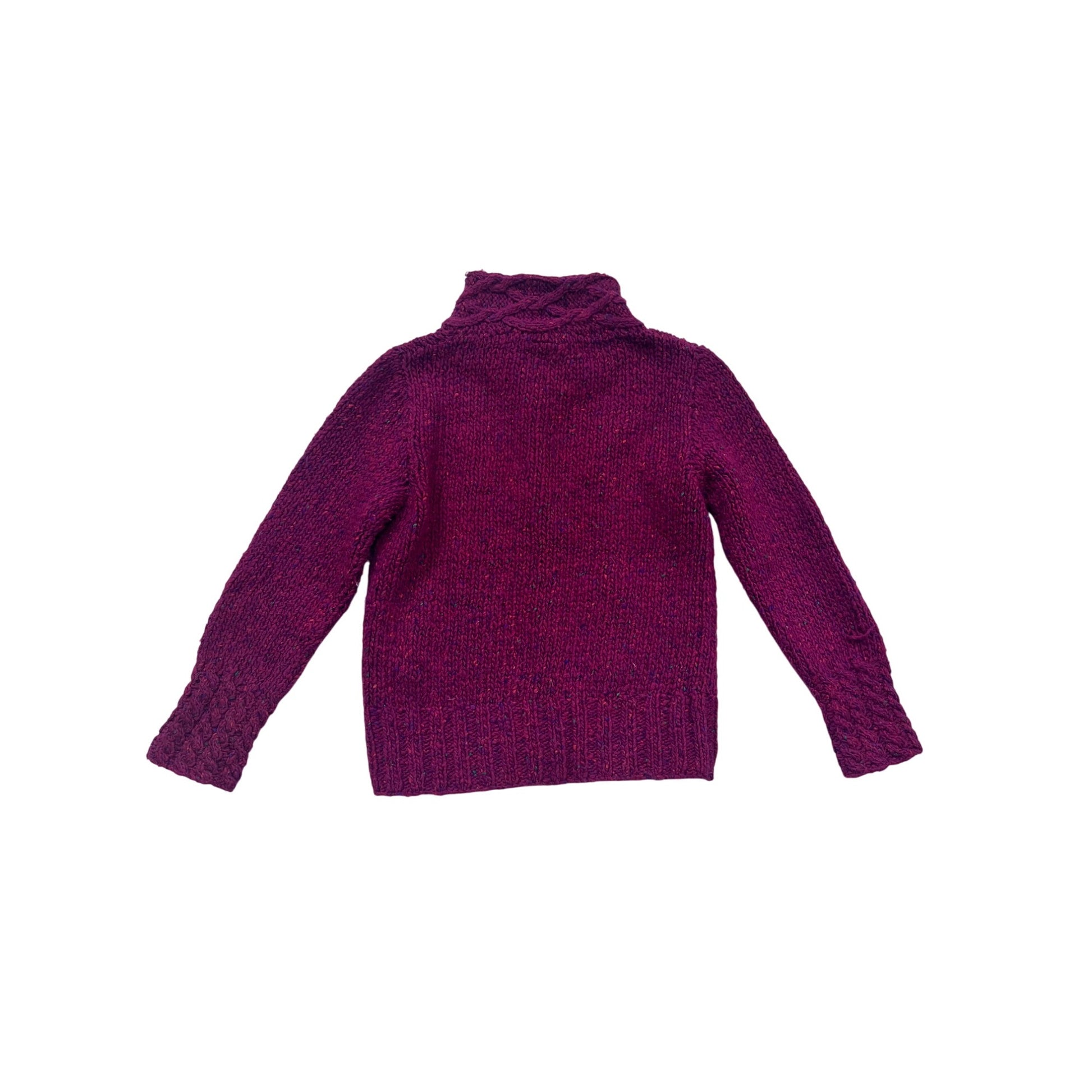 A meticulously crafted Irish wool cardigan that exemplifies traditional craftsmanship and timeless design. Handknitted in Ireland by Carraigdonn, this sweater showcases intricate cable knit detailing at the collar and cuffs, providing both visual interest and functional warmth. The rich magenta hue adds a sophisticated touch to this versatile layering piece.
