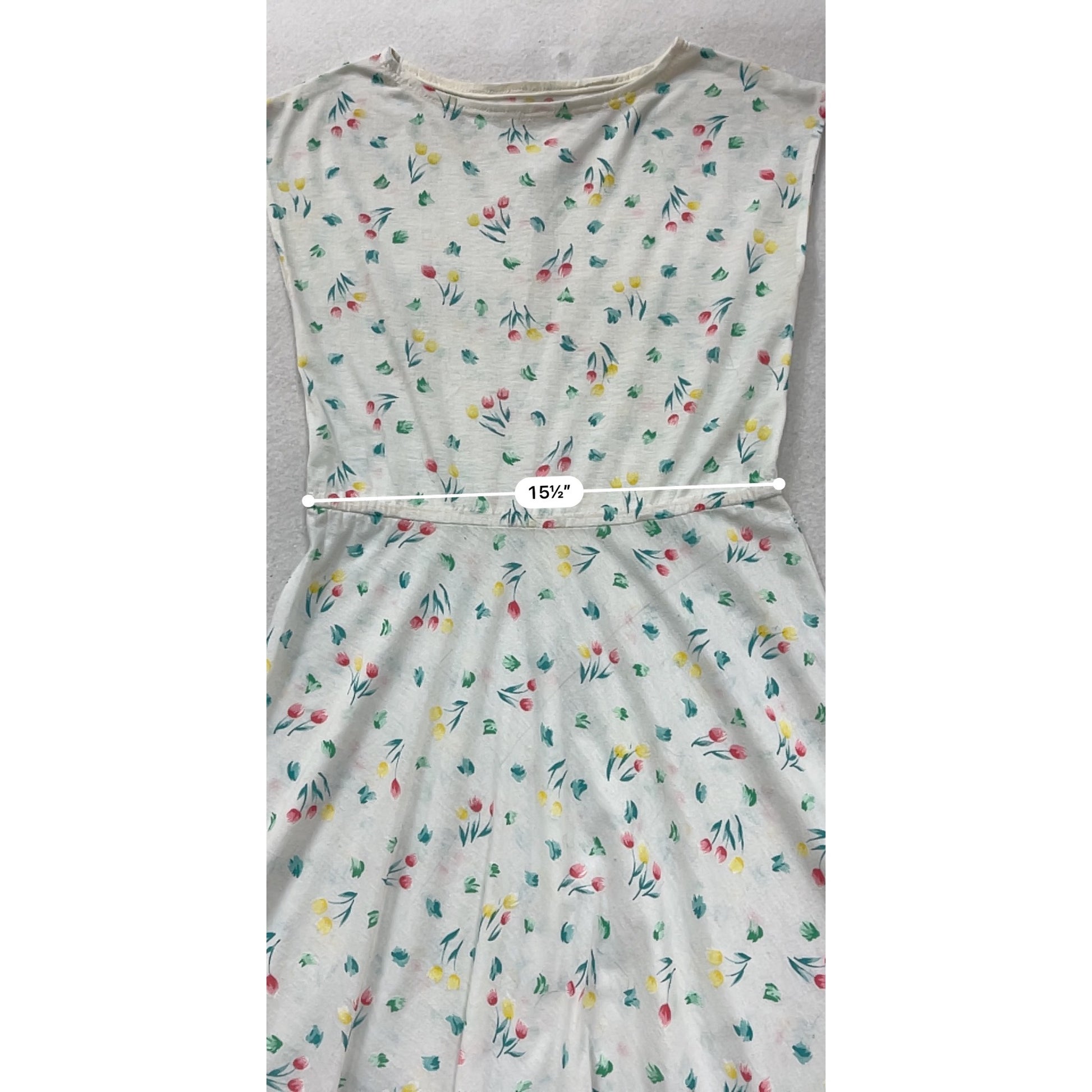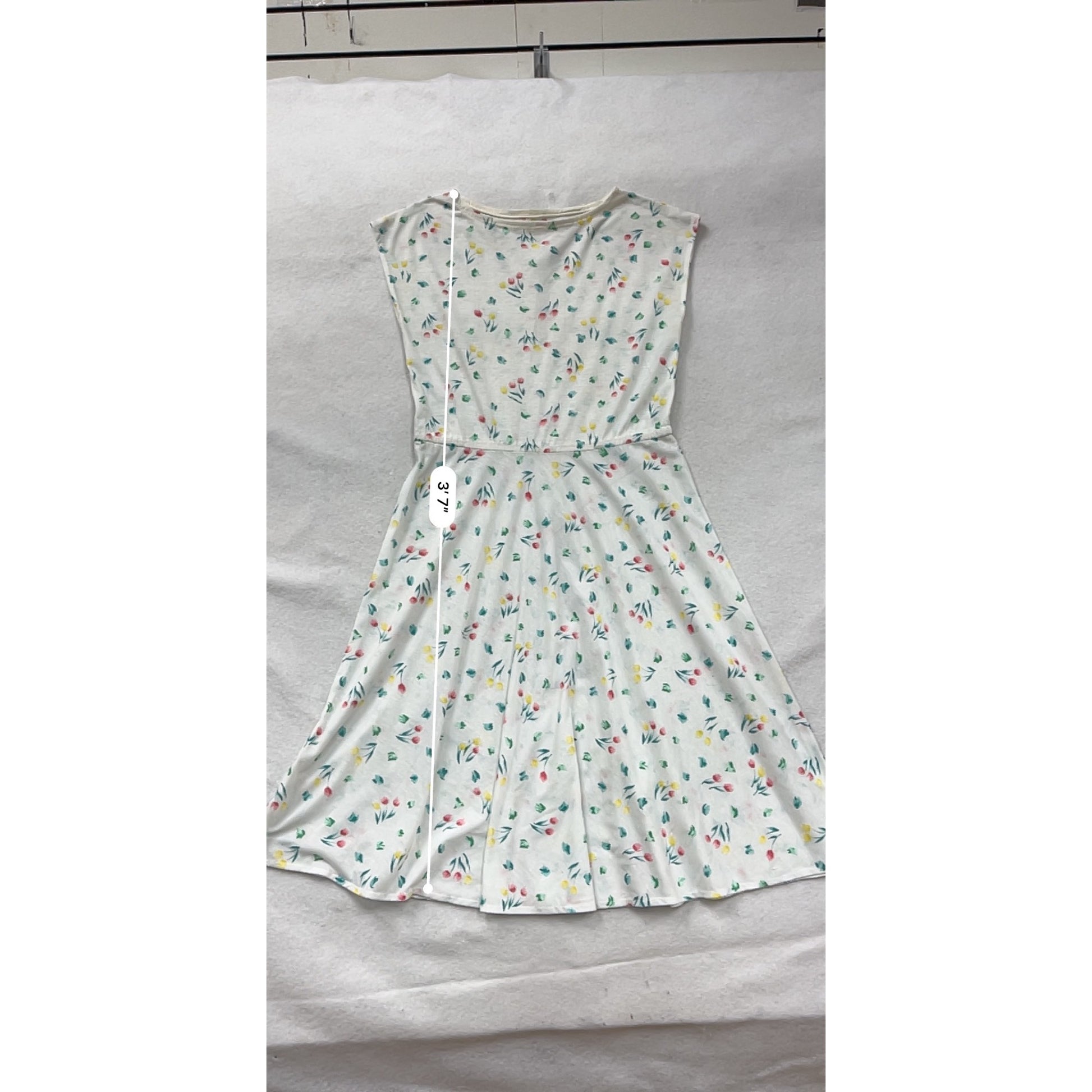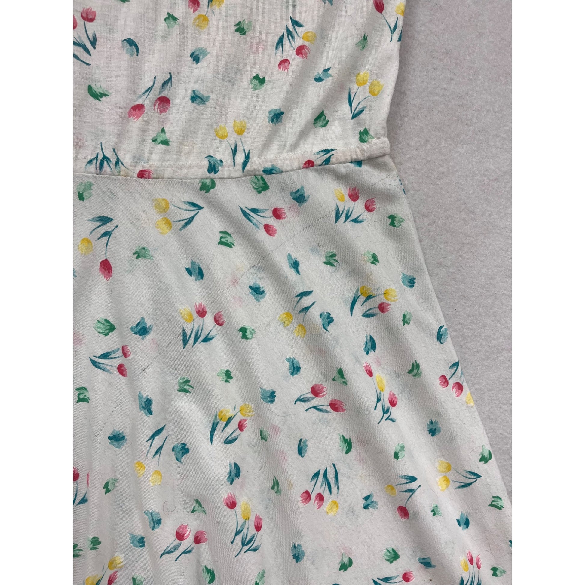 Handmade Sleeveless Floral Print White Dress For Women M/L #8343