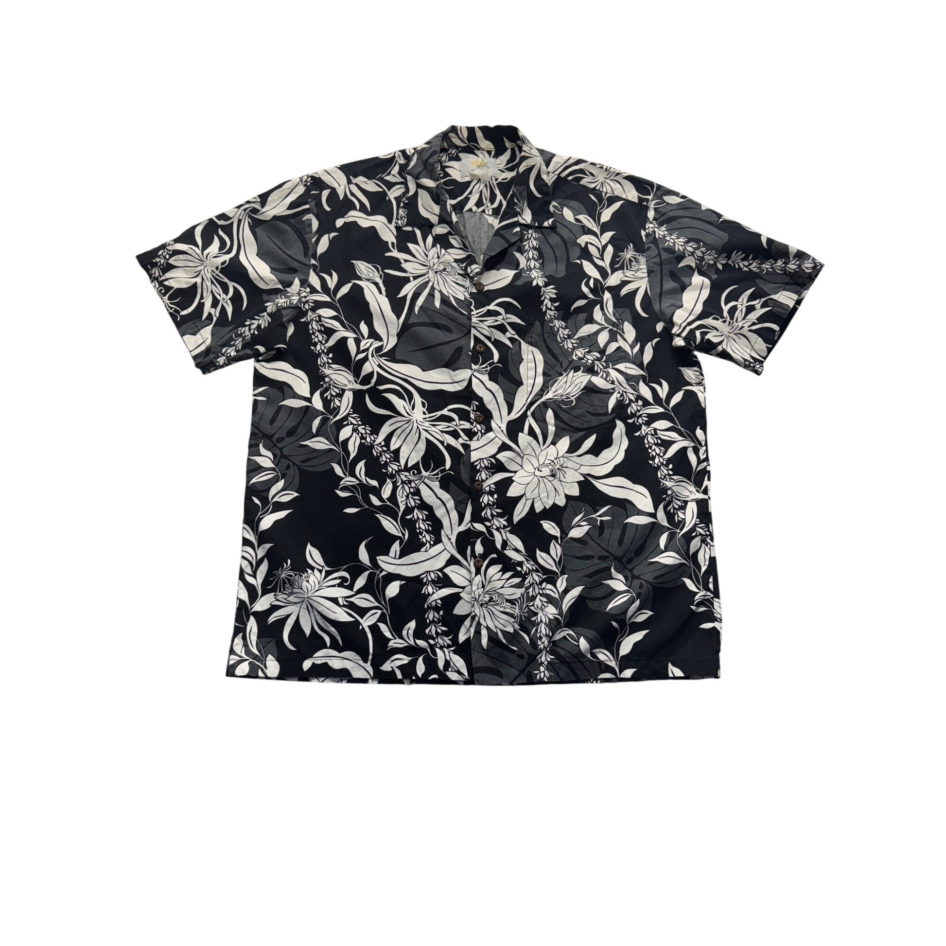 Ho Aloha Made In Hawaii Floral Black & White Hawaiian Shirt #7965