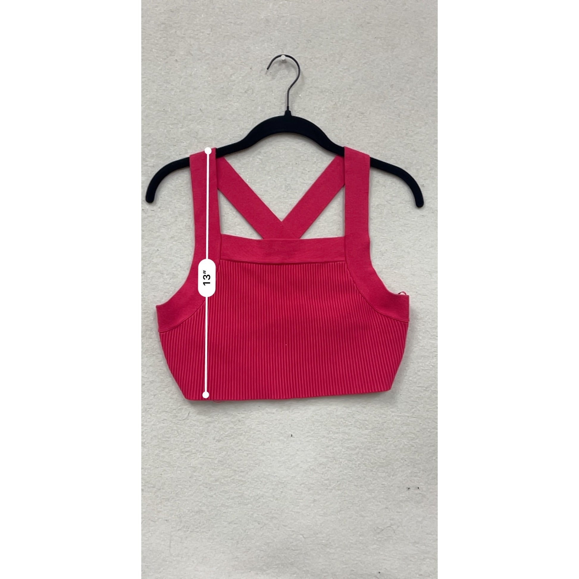 House Of Harlow 1960 Womens Ribbed Pink Cross Back Crop Top Medium #8176