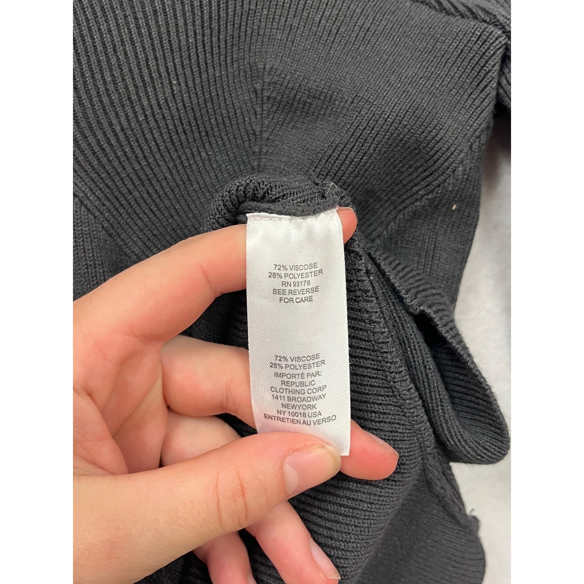 House Of Harlow 1960 Womens XS Black Long-Sleeve Ribbed Knit Fitted Top With Sweetheart Neckline #6963