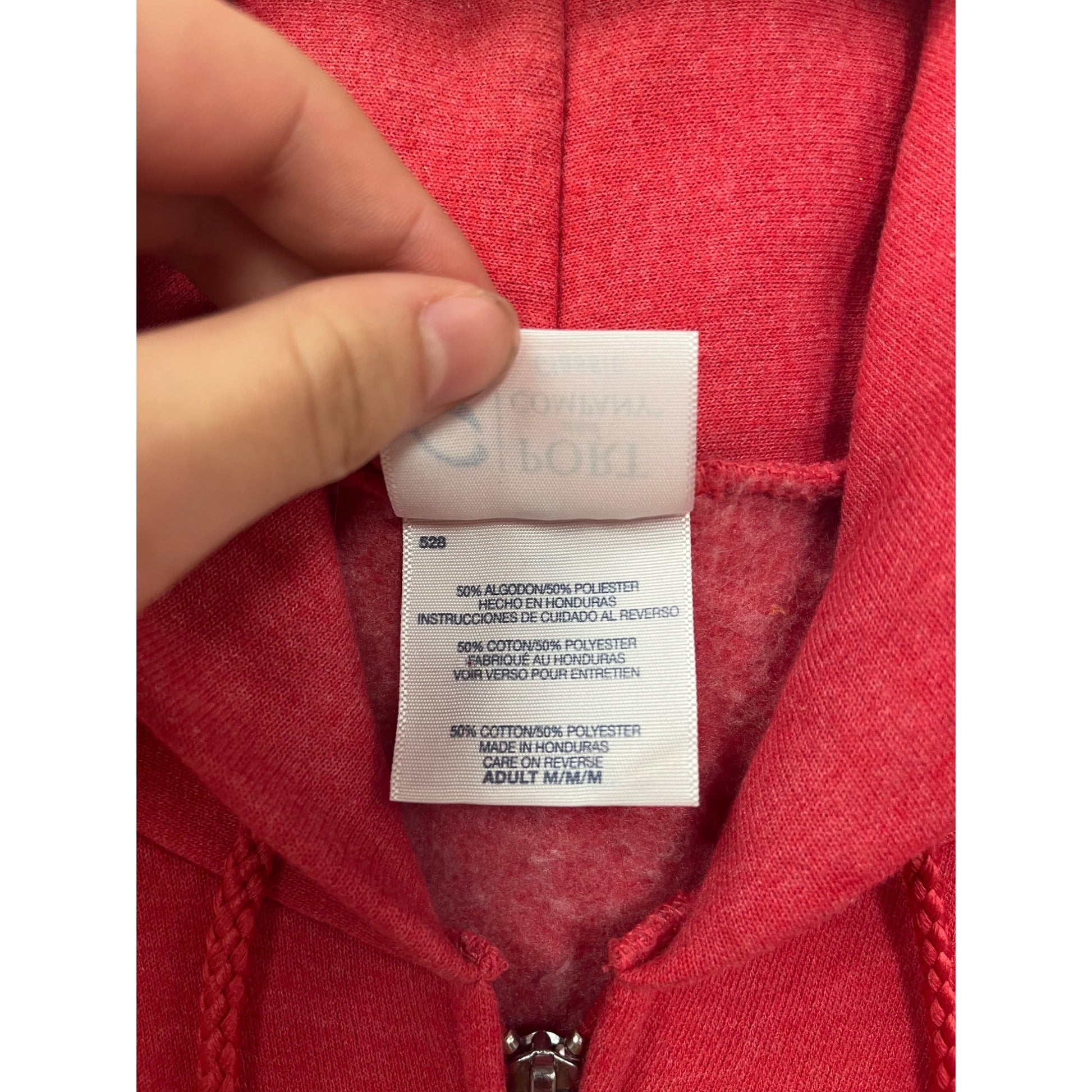This medium-sized hoodie, crafted by Port & Company, combines comfort and style with its cotton-polyester blend. The vibrant red color and detailed Iditarod 2017 husky graphic enhance its appeal, making it a versatile addition to casual wardrobes.