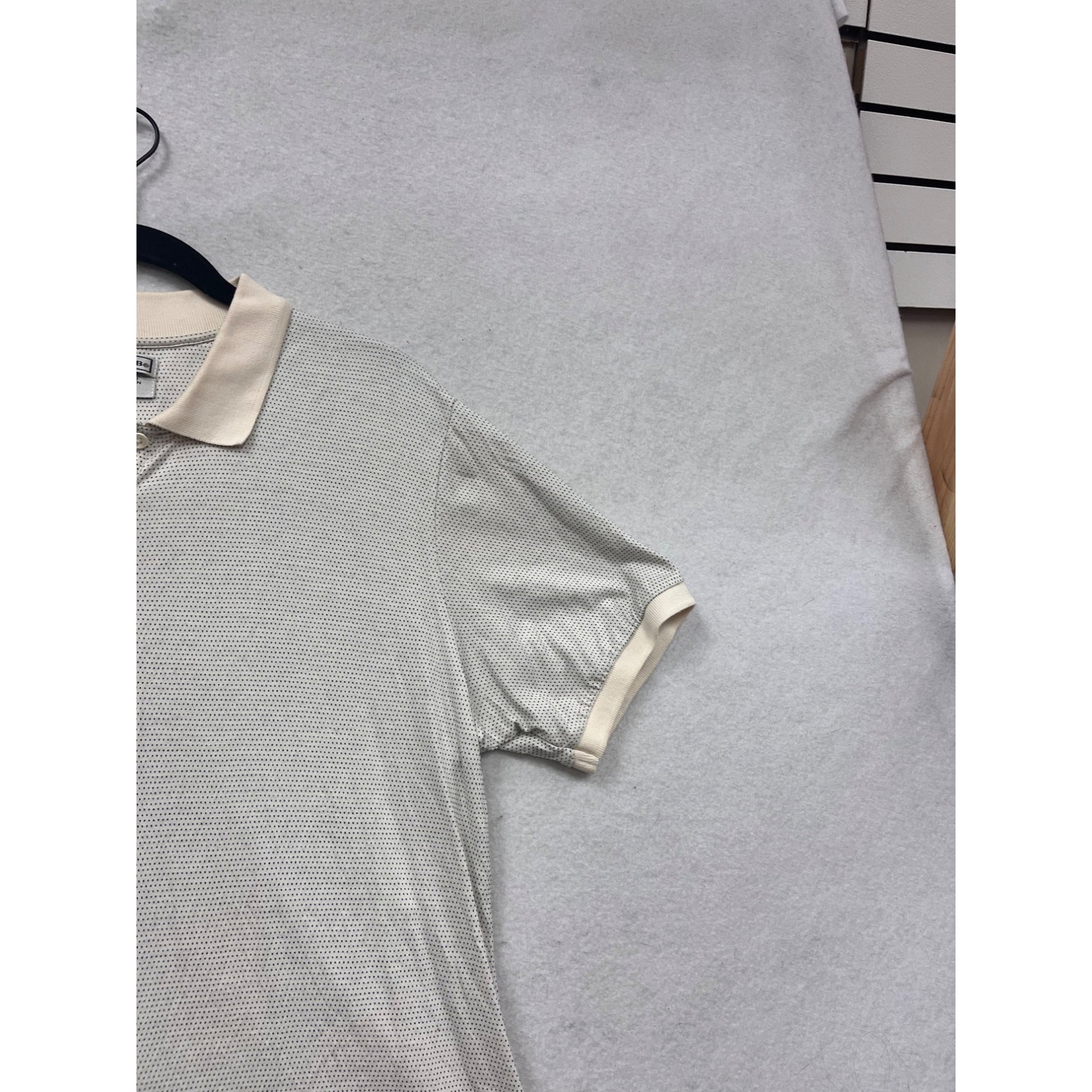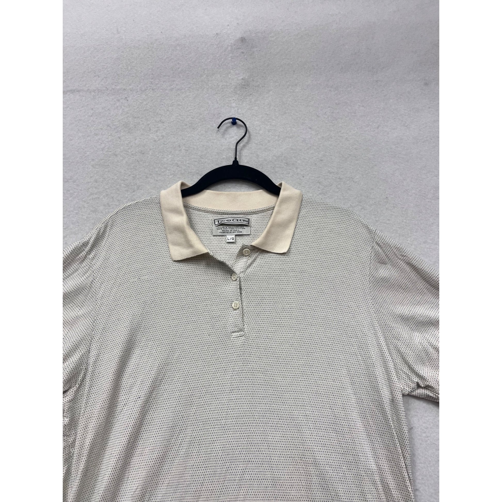 This Izod Club polo shirt for men, made from double mercerized cotton, offers a refined look suitable for professional settings. Its beige color and minimalistic design provide a timeless appeal, making it an appropriate choice for office wear or business casual events.