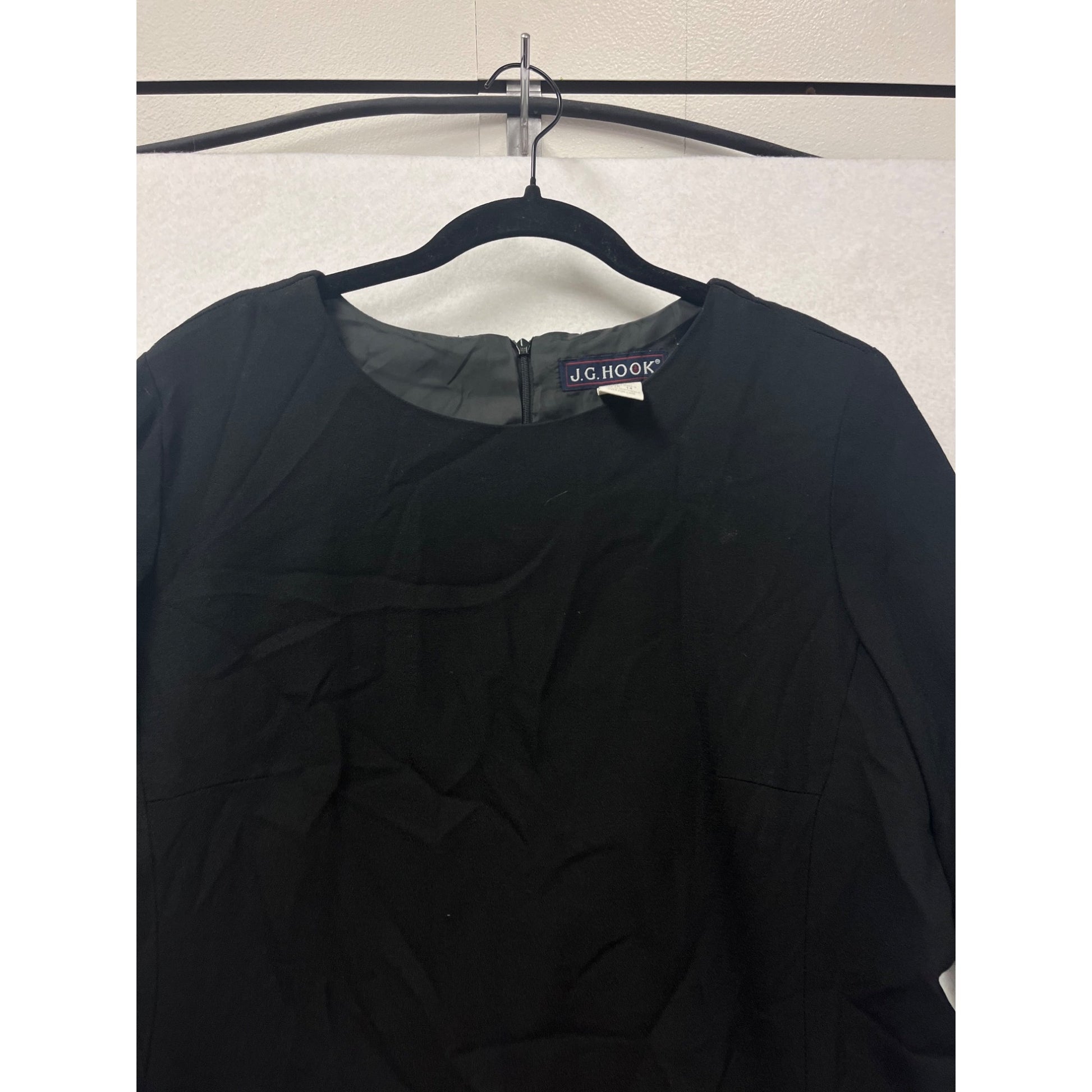This elegant dress by J.G. Hook combines classic style with comfort, featuring a luxurious wool shell and polyester lining. Perfect for professional settings, it offers a refined look with its long sleeves and back zipper closure. Its black color ensures versatility and timelessness, making it a staple in any wardrobe.