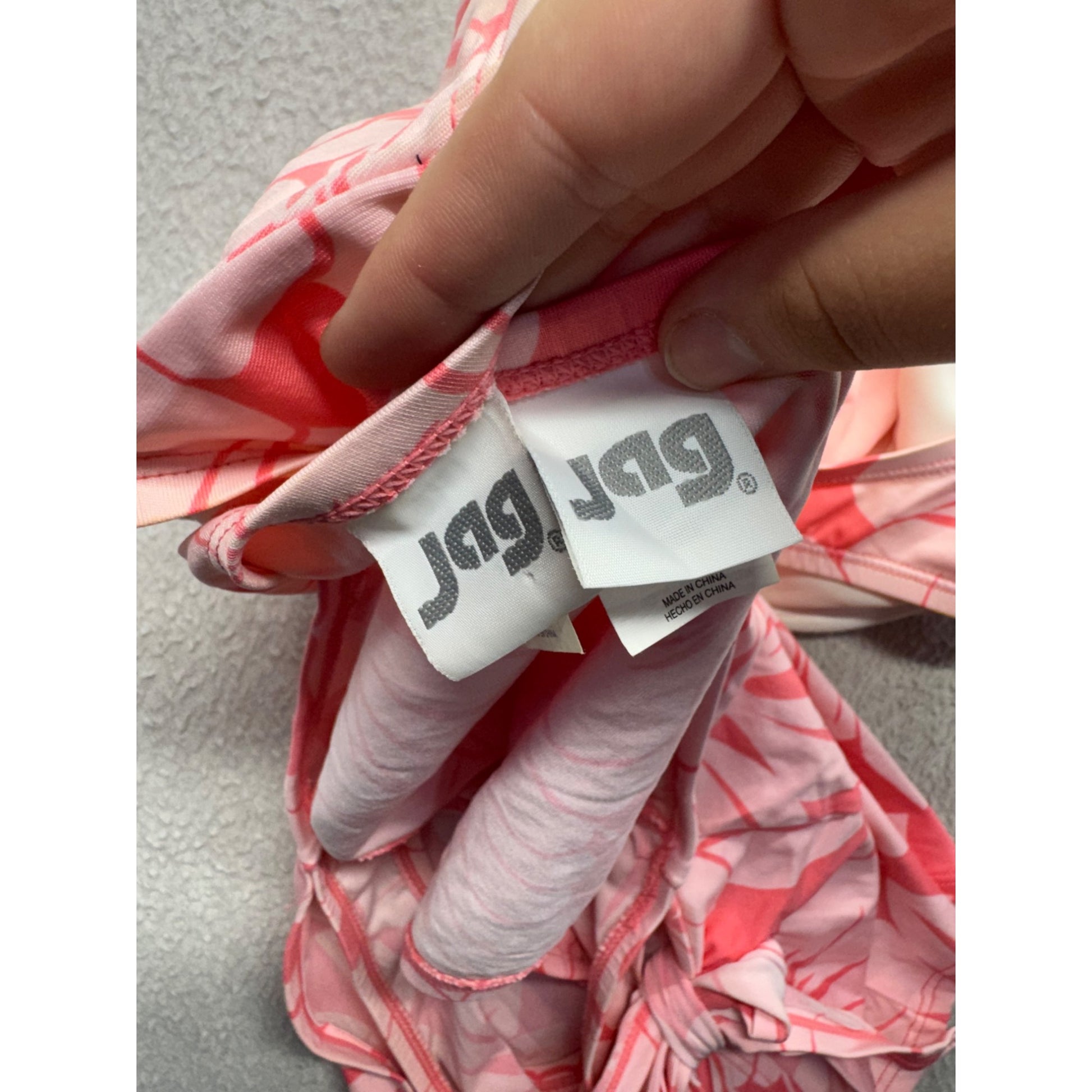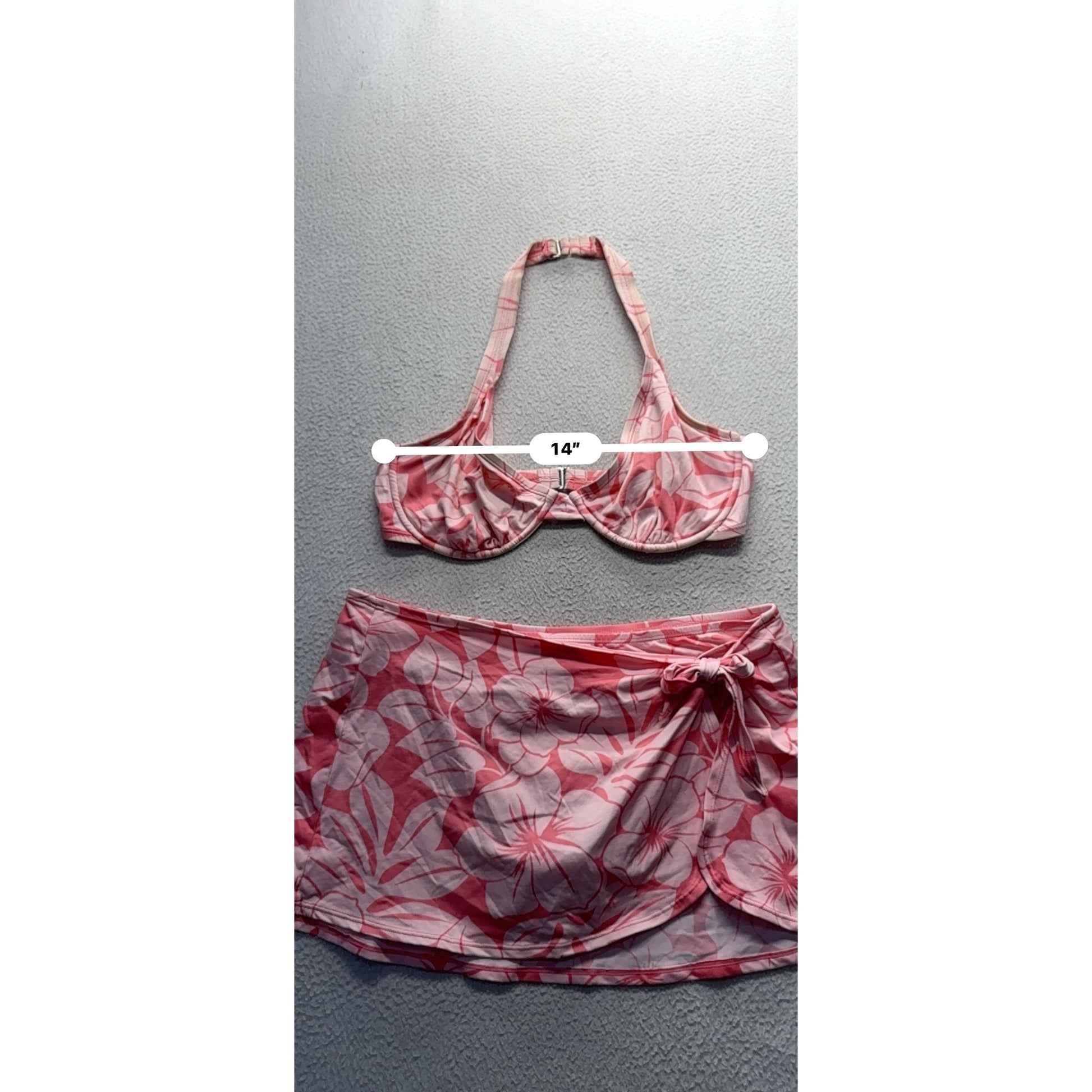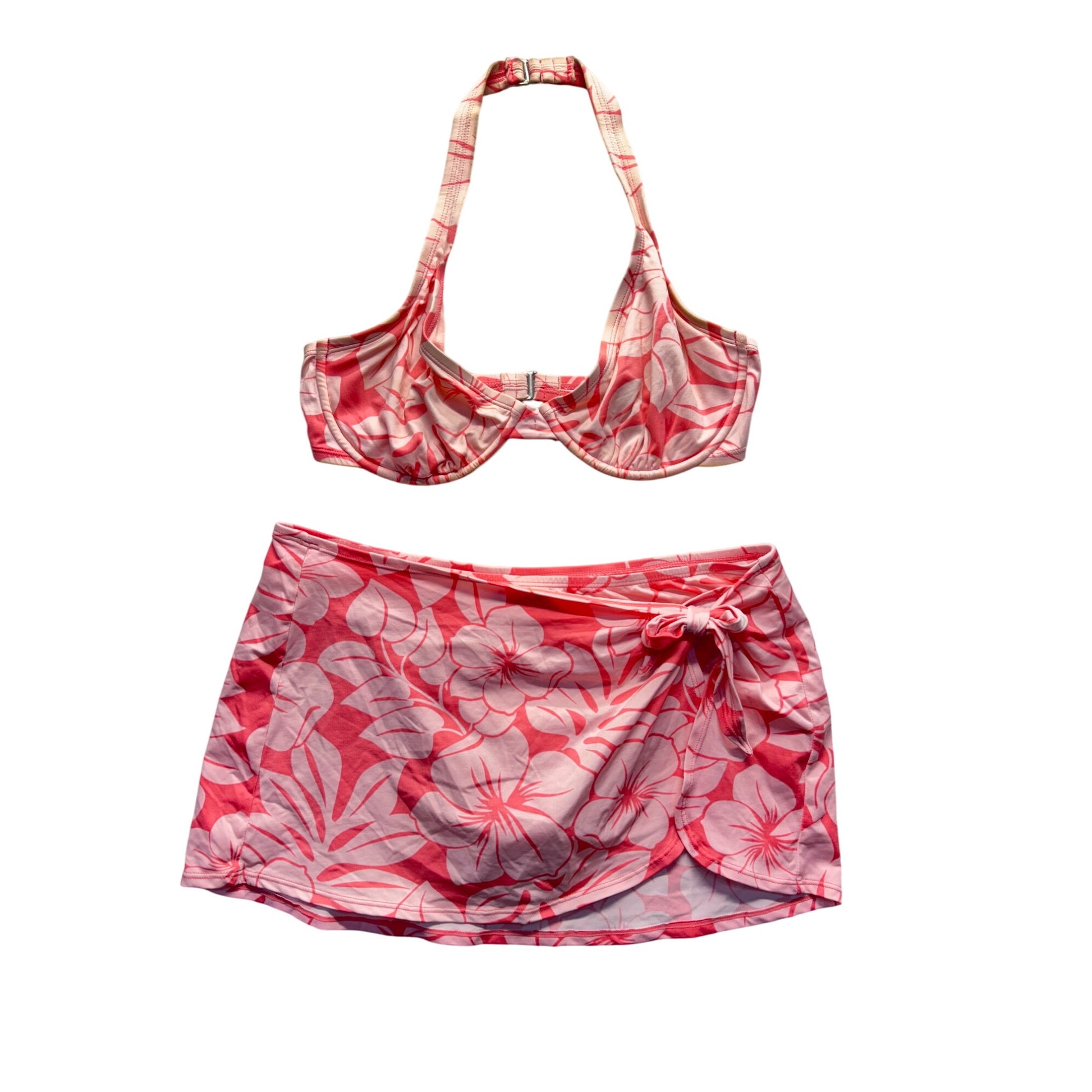 Jag Floral Print Halter Swim Top & Skirted Bottom Set Large Pink #9999