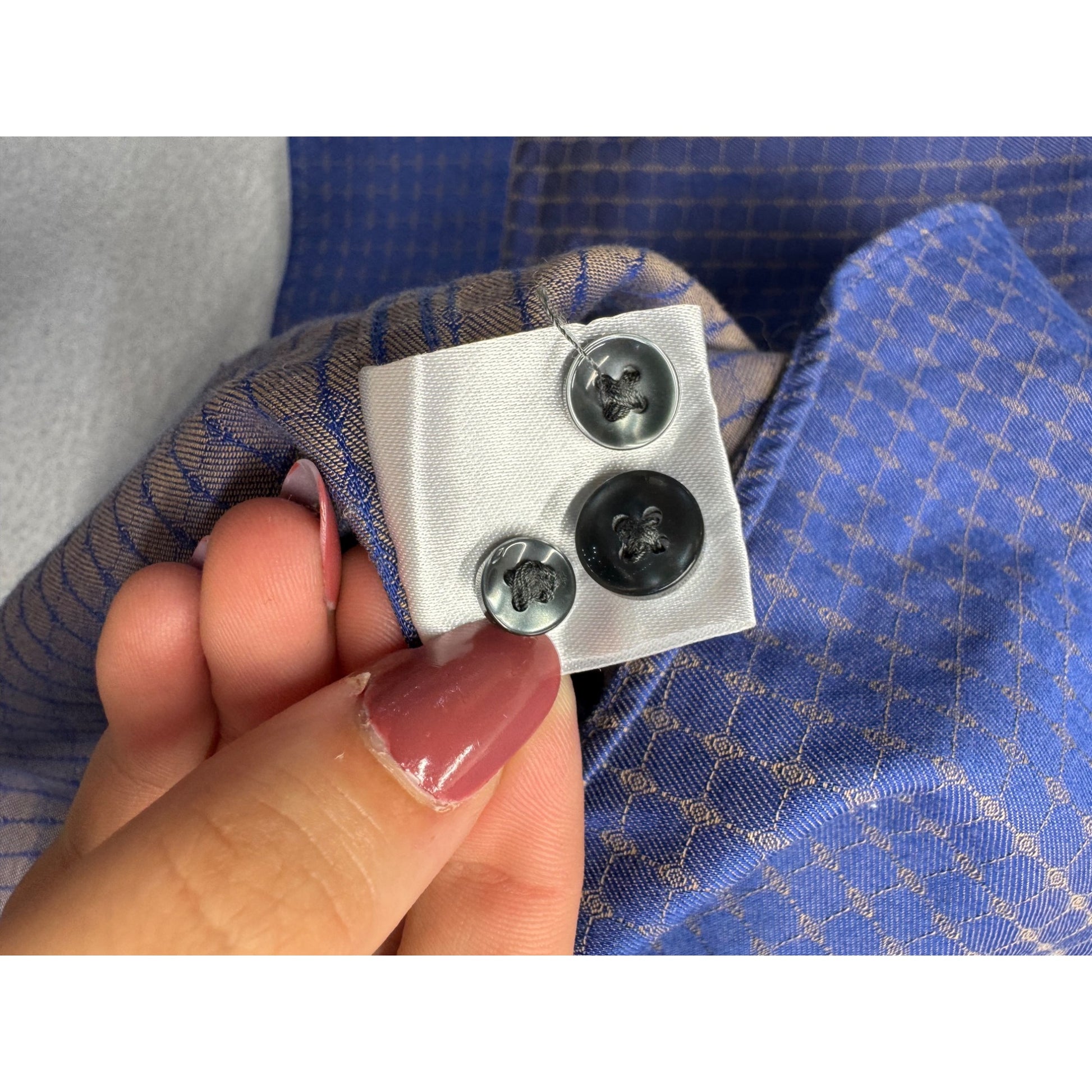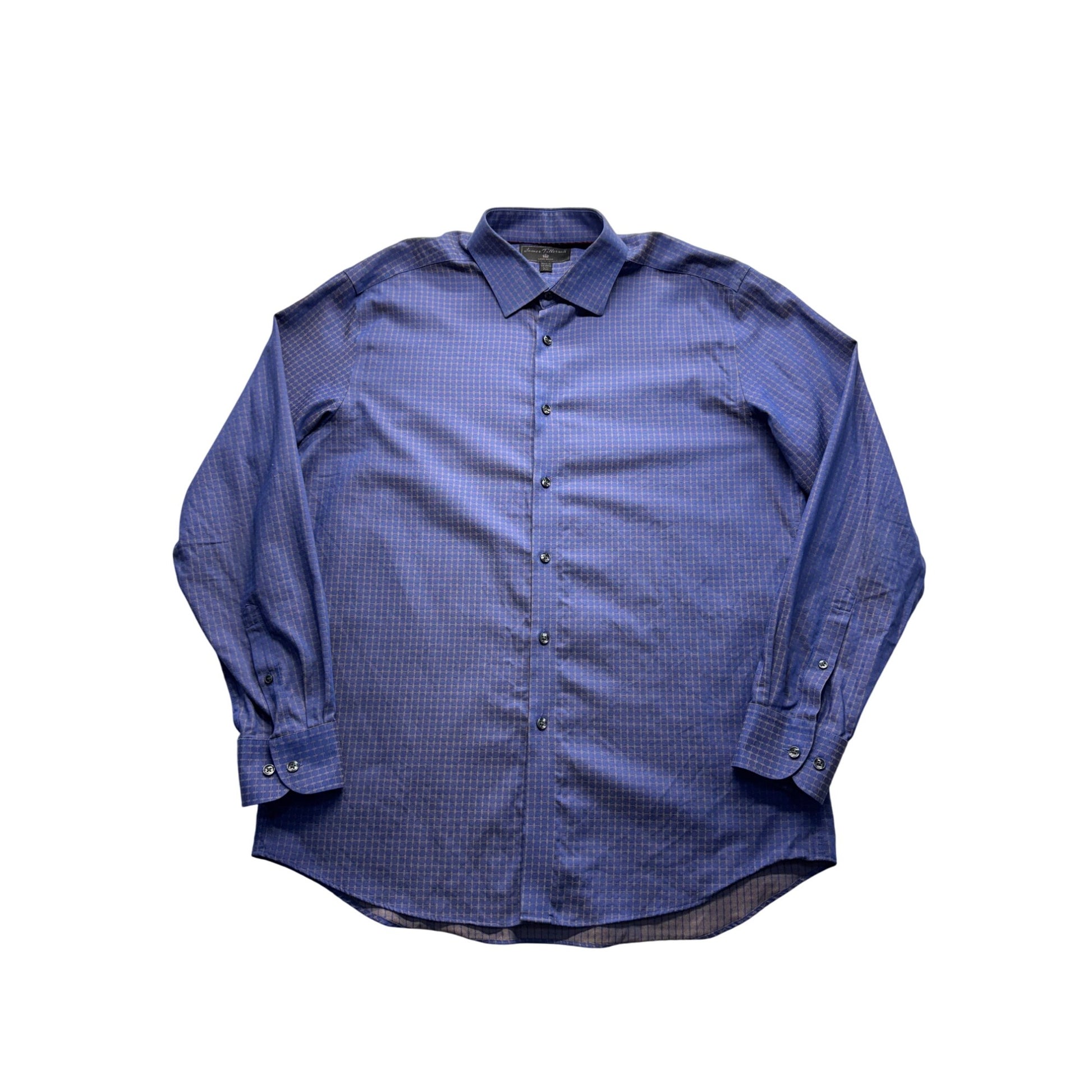 James Tattersall Shirt 17 1/2 Blue Pattern Long Sleeve Button-Up #9042