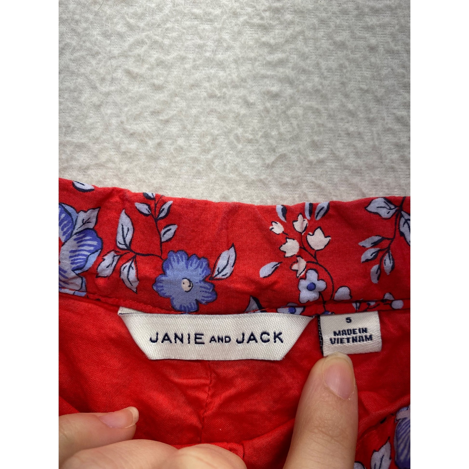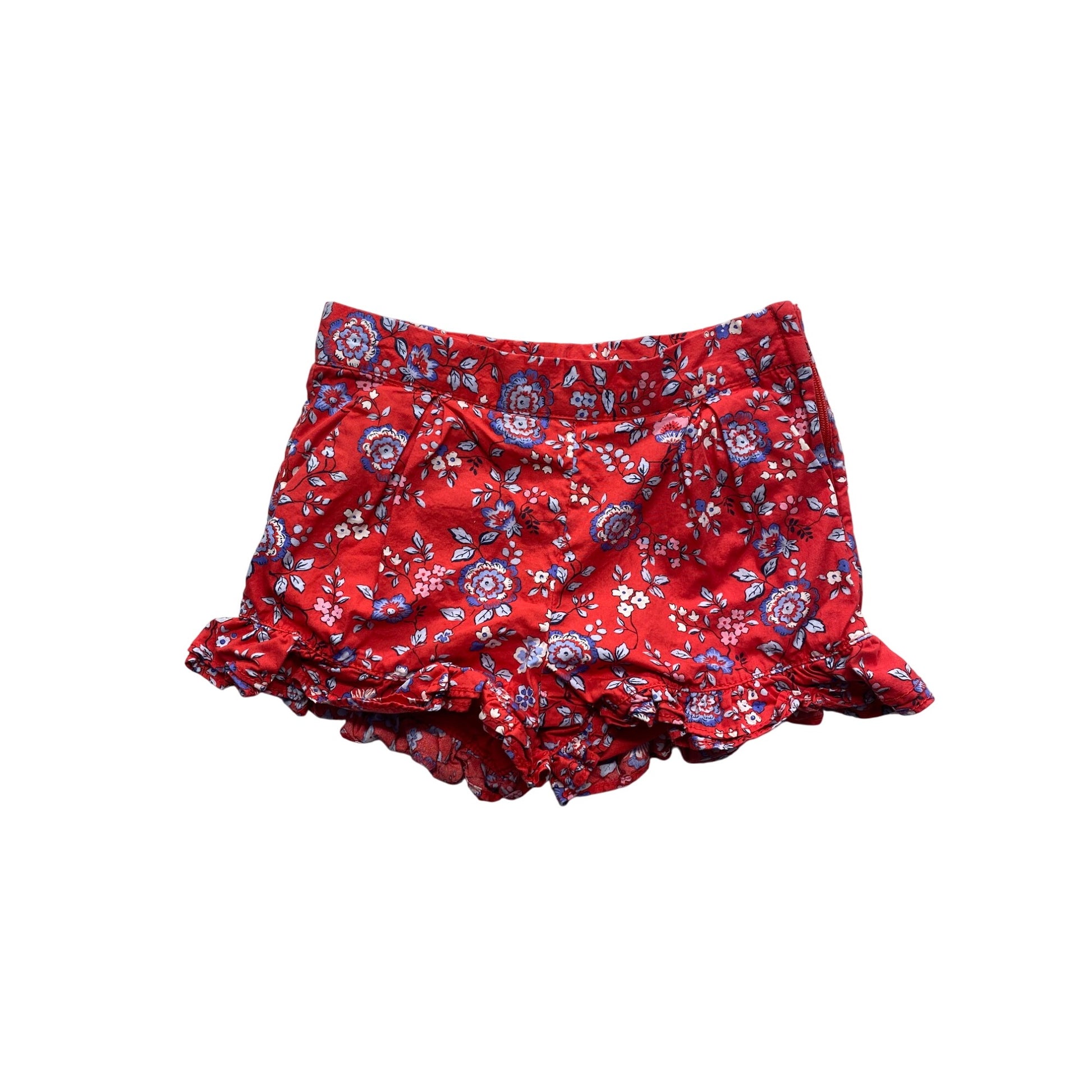 Janie & Jack Girls Red Floral Ruffle Trim Cotton Shorts #7365