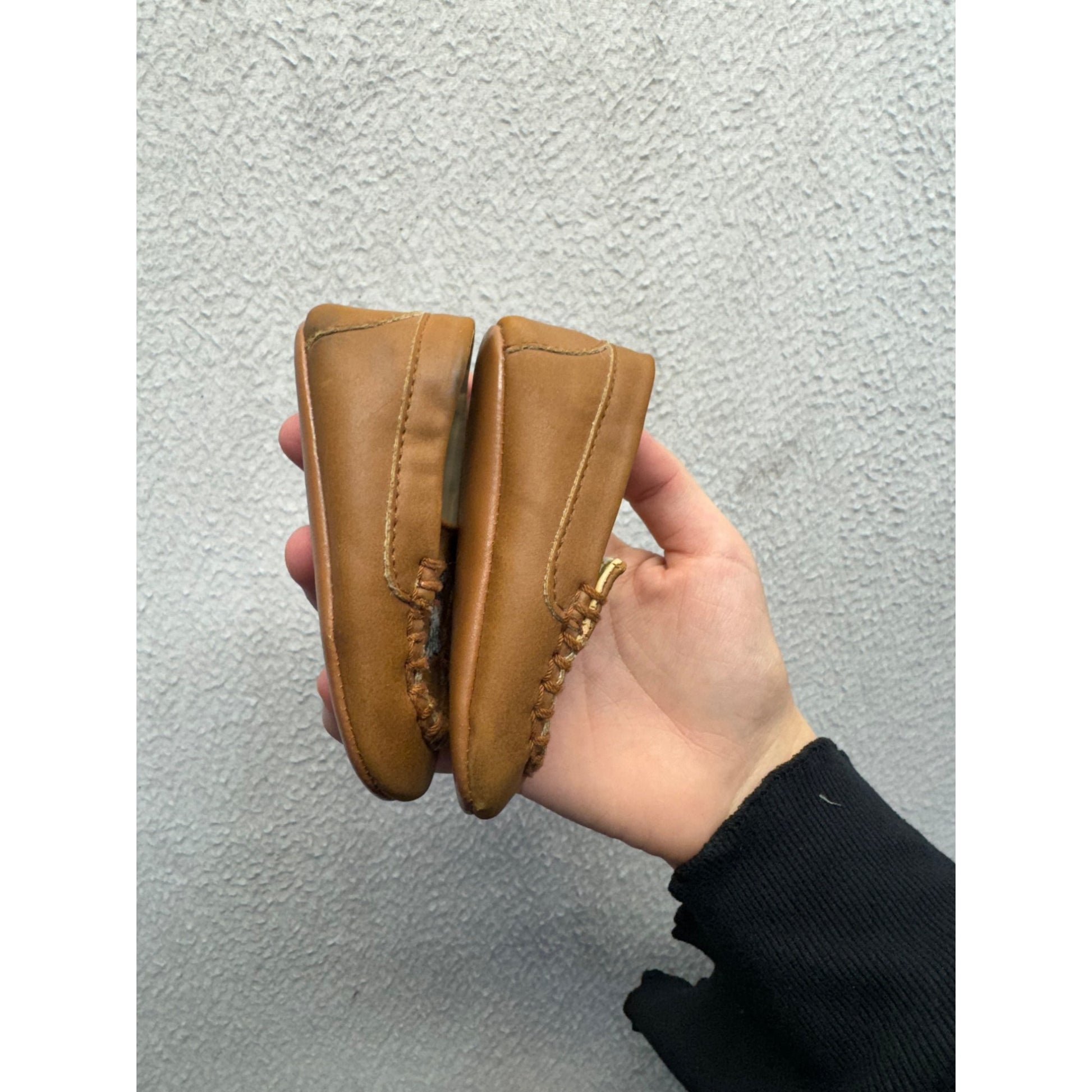 Janie & Jack Infant Brown Leather Moccasins With Embroidered Dog Design 9445